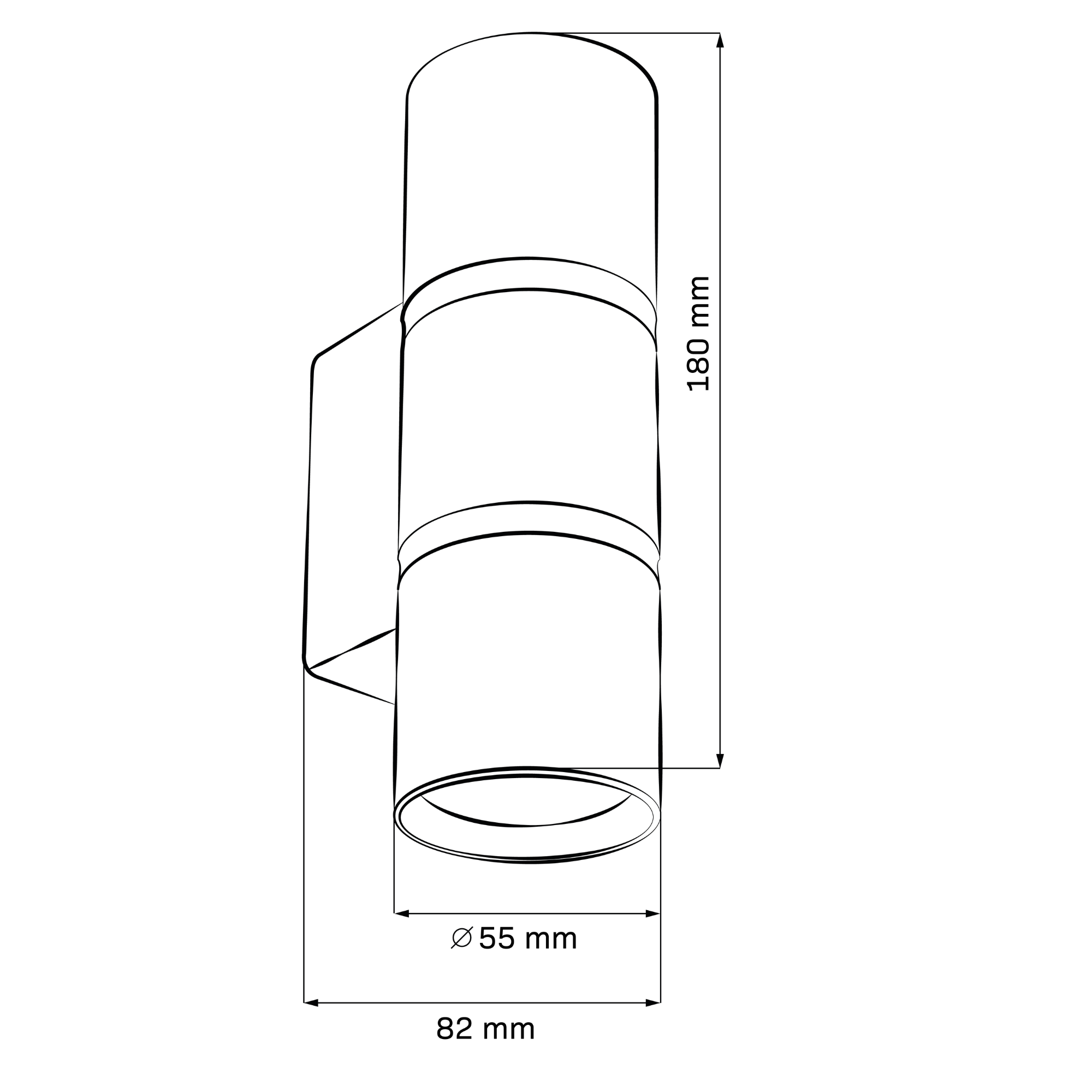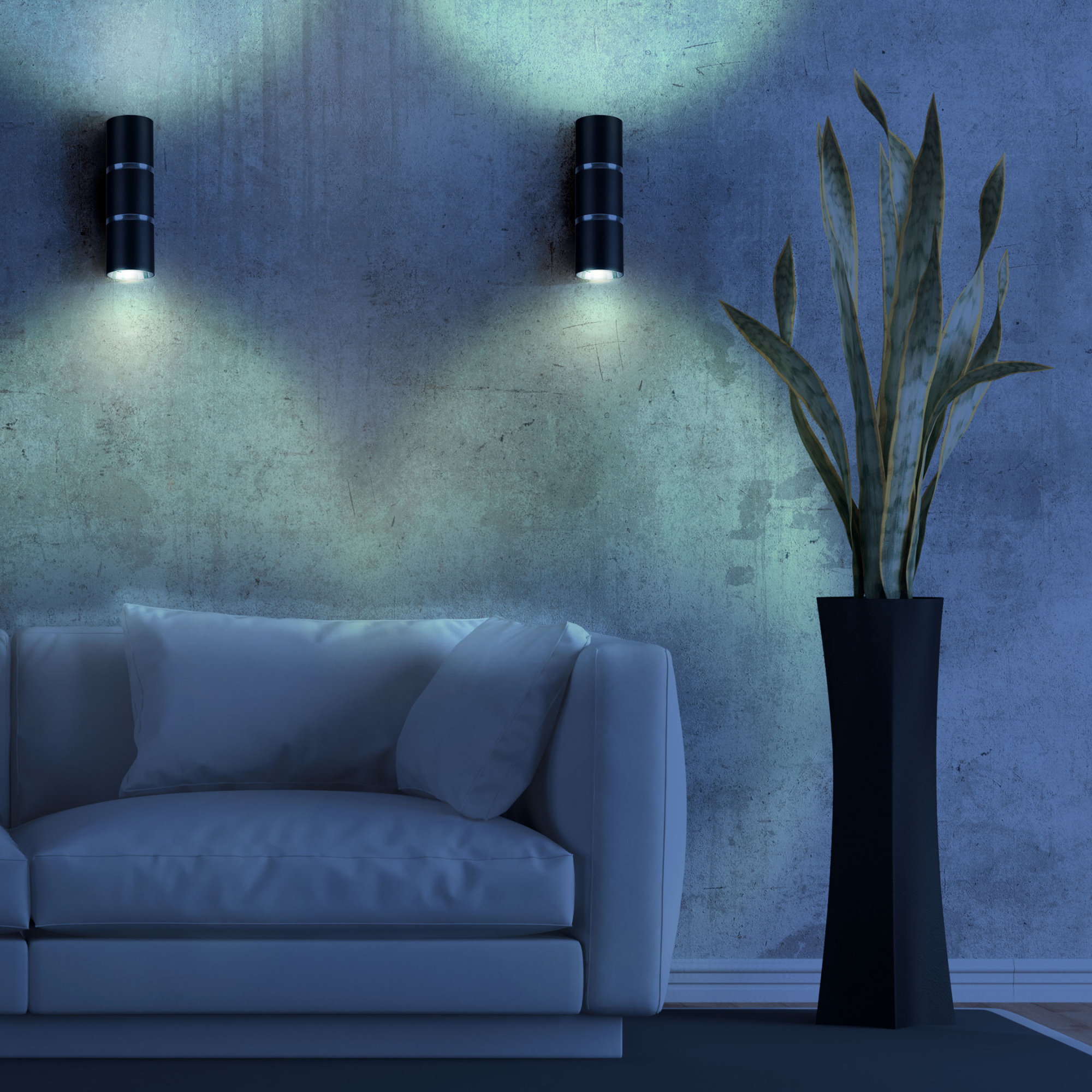BAMBOO to nowoczesna oprawa ścienna z wymiennym źródłem światła, wykonana z aluminium w kolorze czarnym. Elementem dekoracyjnym oprawy są dwa srebrne pierścienie.