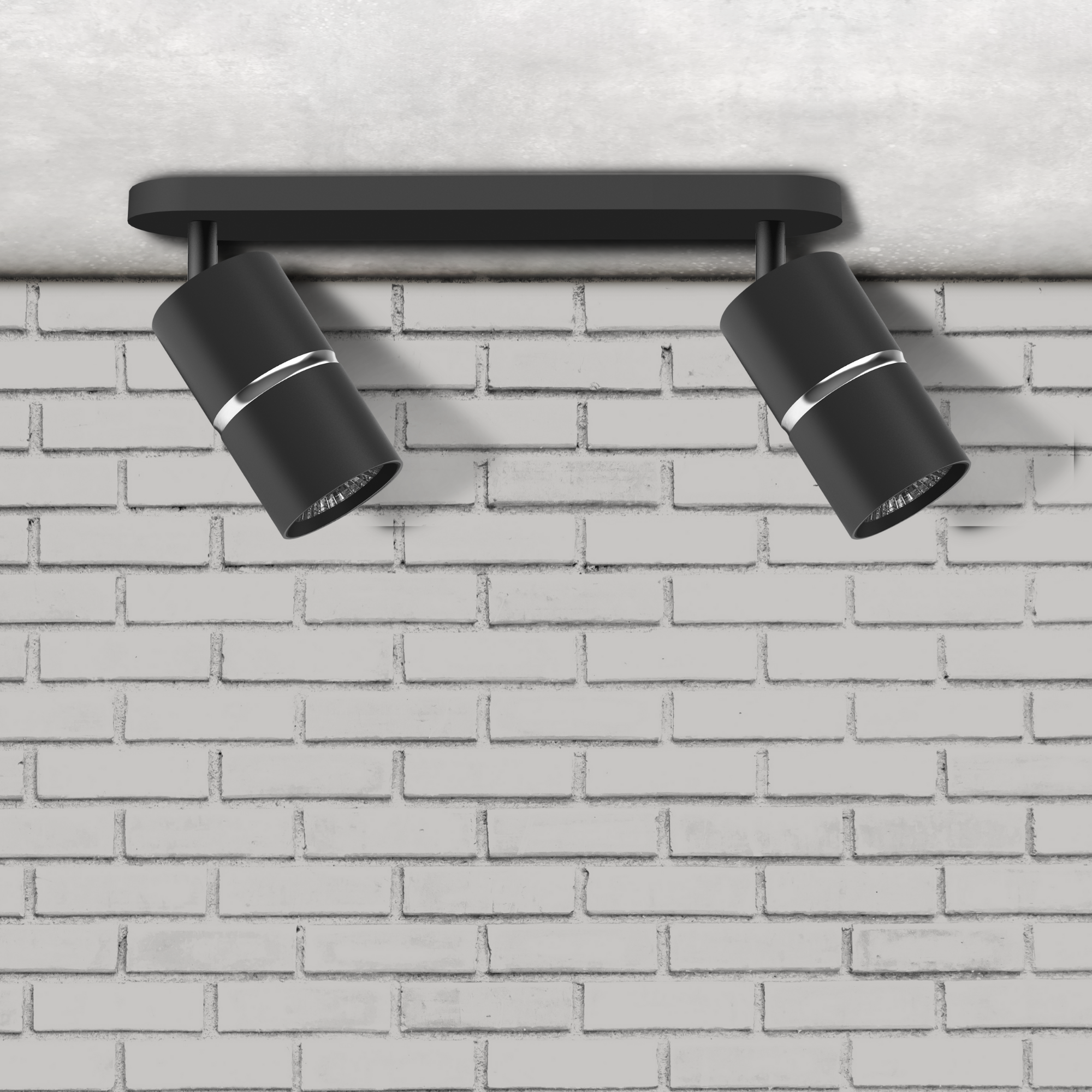 BAMBOO to dwupunktowa, nowoczesna oprawa, listwa z wymiennym źródłem światła, wykonana z aluminium w kolorze czarnym. Elementem dekoracyjnym oprawy jest srebrny pierścień pośrodku każdego klosza.