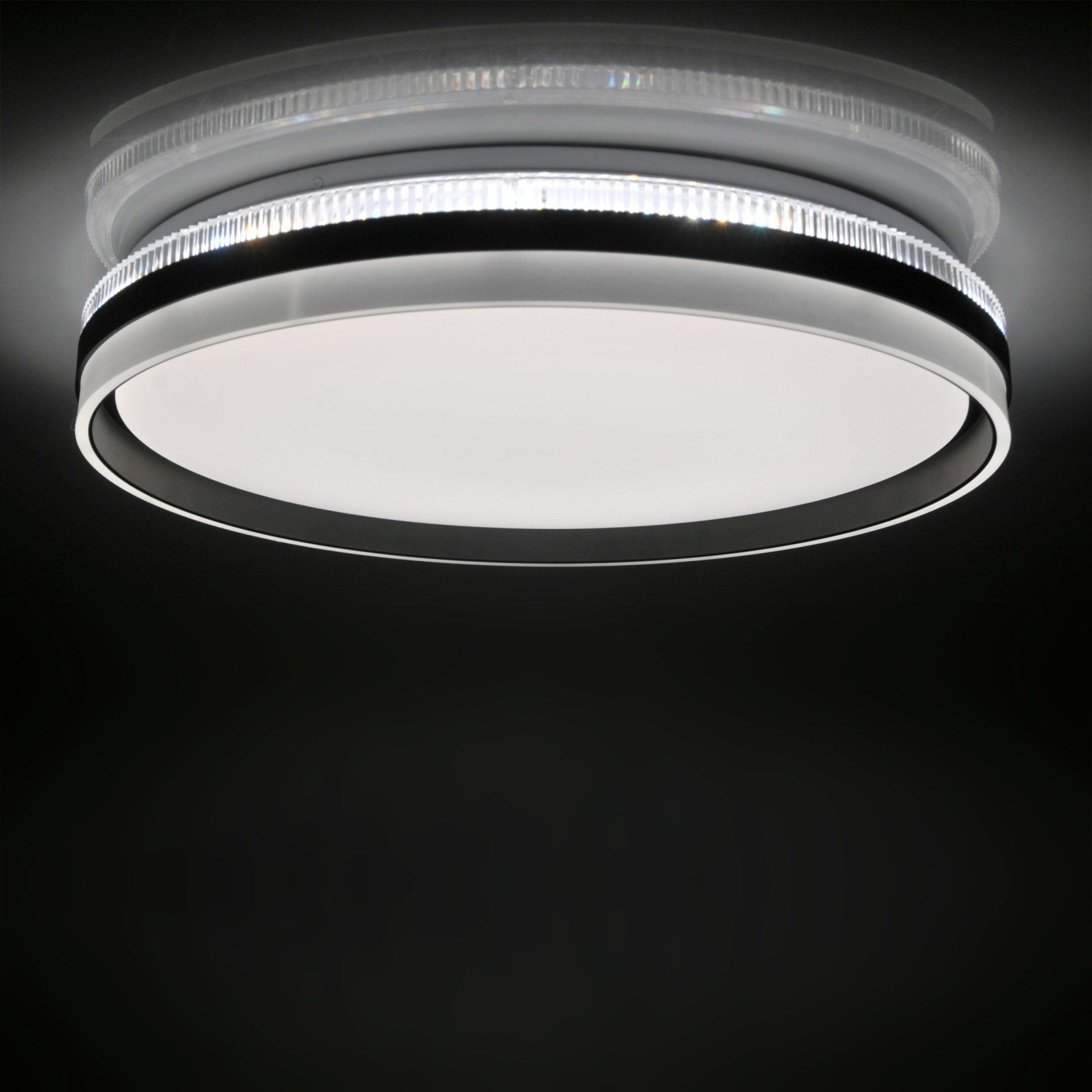 Plafon z pilotem za pomocą którego można płynnie zmienić barwę świecenia od ciepłej białej przez neutralną po zimno białą (3000K-4000K-6000K) oraz wybrać ilość światła, plafon z możliwością ściemniania.
