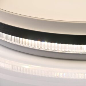 Mleczny klosz wspaniale rozprasza światło, dzięki czemu lampa świeci równomiernie na całej powierzchni, nie występuje efekt świecenia punktowego, czy zaciemnionego miejsca z jednej strony (jak w przypadku tradycyjnych plafonów z wkręcaną żarówką), nie powodując tym samym efektu olśnienia.