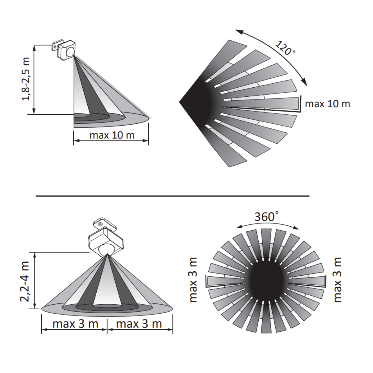 Maksymalny pionowy kąt działania czujnika ruchu wynoszący 120°