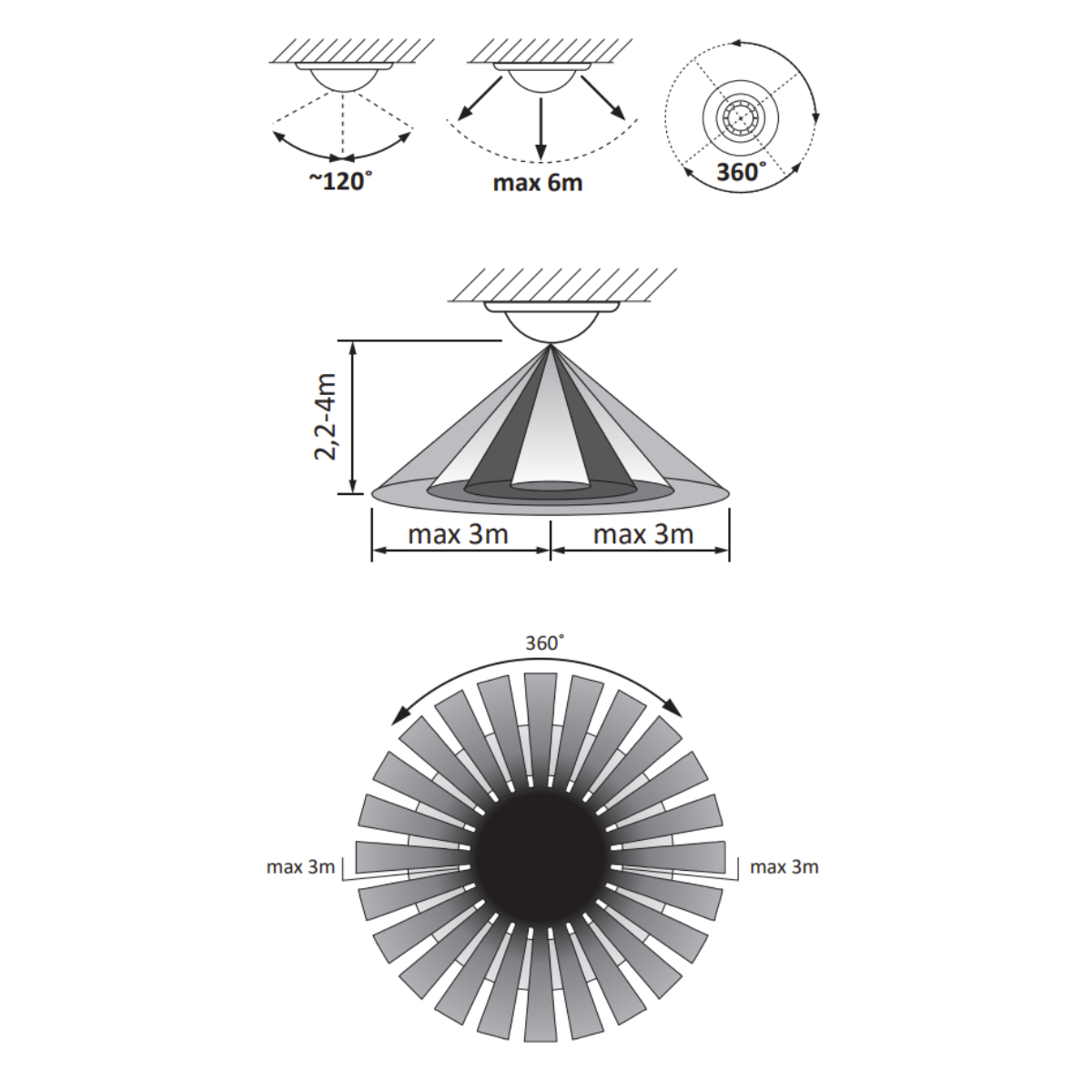 Maksymalny pionowy kąt działania czujnika ruchu wynoszący 120°