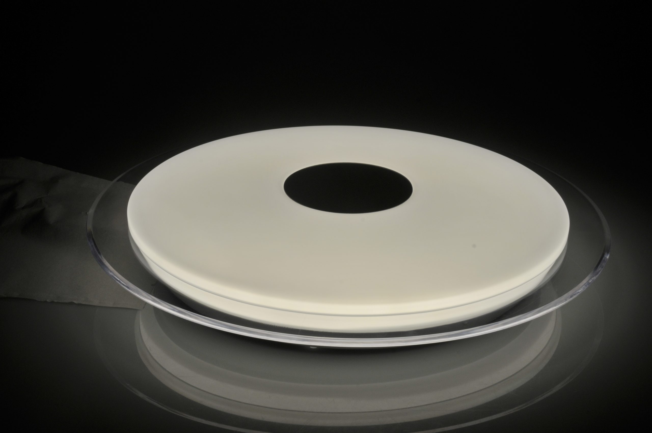 Mleczny klosz wspaniale rozprasza światło, dzięki czemu lampa świeci równomiernie na całej powierzchni, nie występuje efekt świecenia punktowego, czy zaciemnionego miejsca z jednej strony (jak w przypadku tradycyjnych plafonów z wkręcaną żarówką), nie powodując tym samym efektu olśnienia.