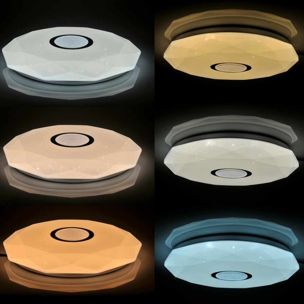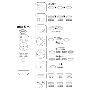 Plafon z pilotem za pomocą którego można płynnie zmienić barwę świecenia od ciepłej białej przez neutralną po zimno białą (3000K-4000K-6000K) oraz wybrać ilość światła, plafon z możliwością ściemniania.