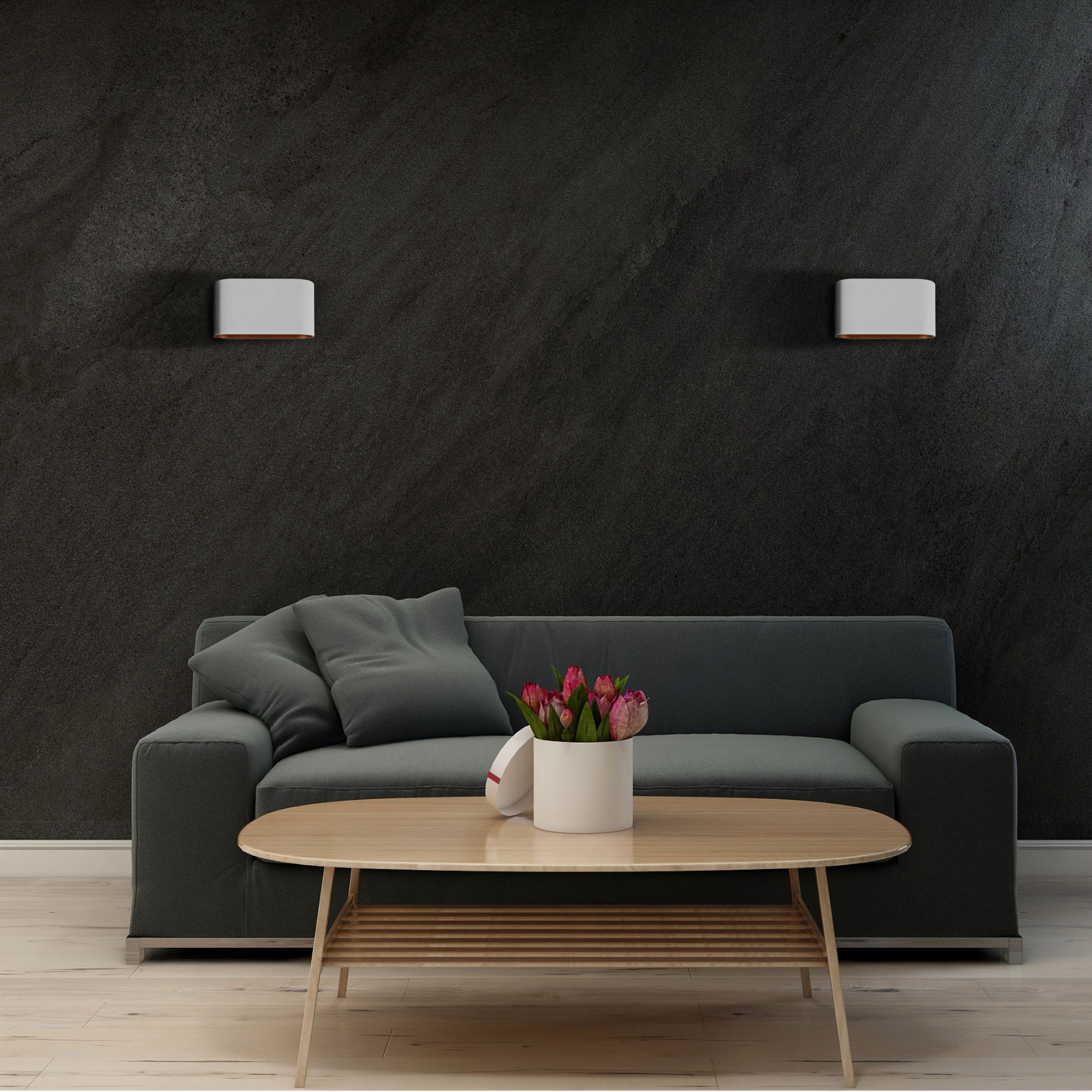 ELISSA to ścienna oprawa wykonana z aluminium w kolorze białym ze złotym wnętrzem. Jako źródło światła została zastosowana żarówka z trzonkiem G9.