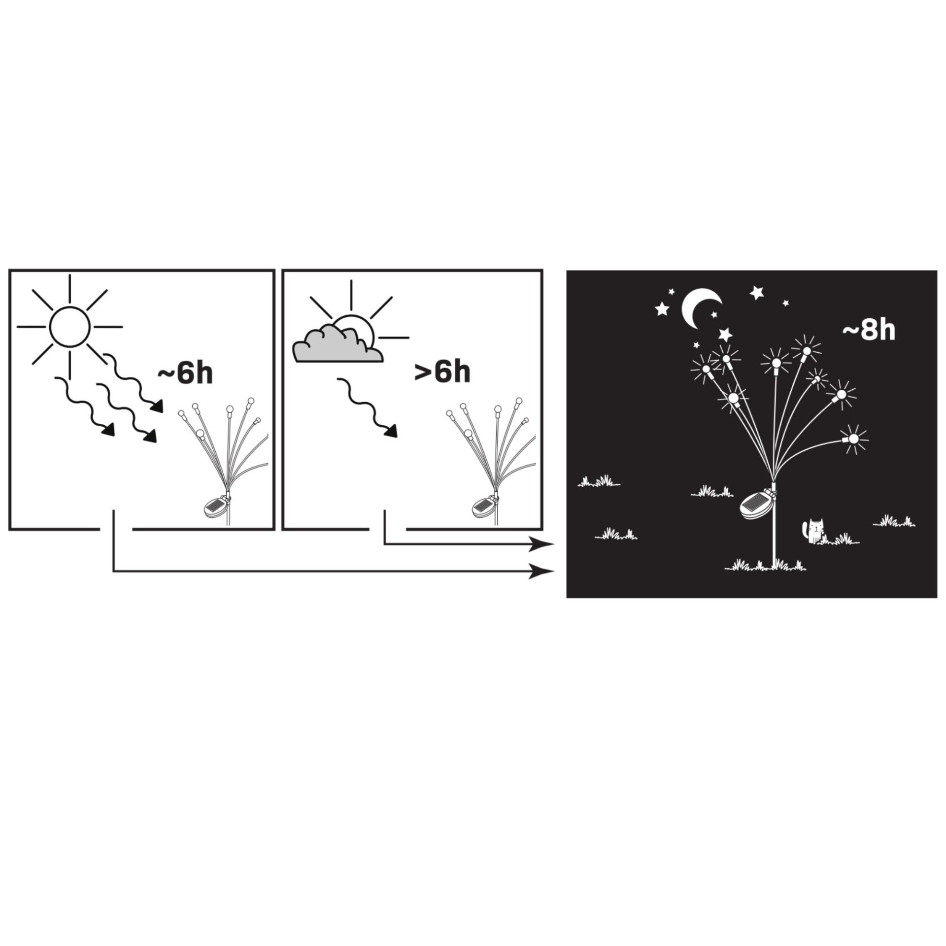 - Czas świecenia po całkowitym naładowaniu akumulatora: max 8h, (mierzono latem, akumulator ładowany w warunkach słonecznej pogody w ciągu dnia)