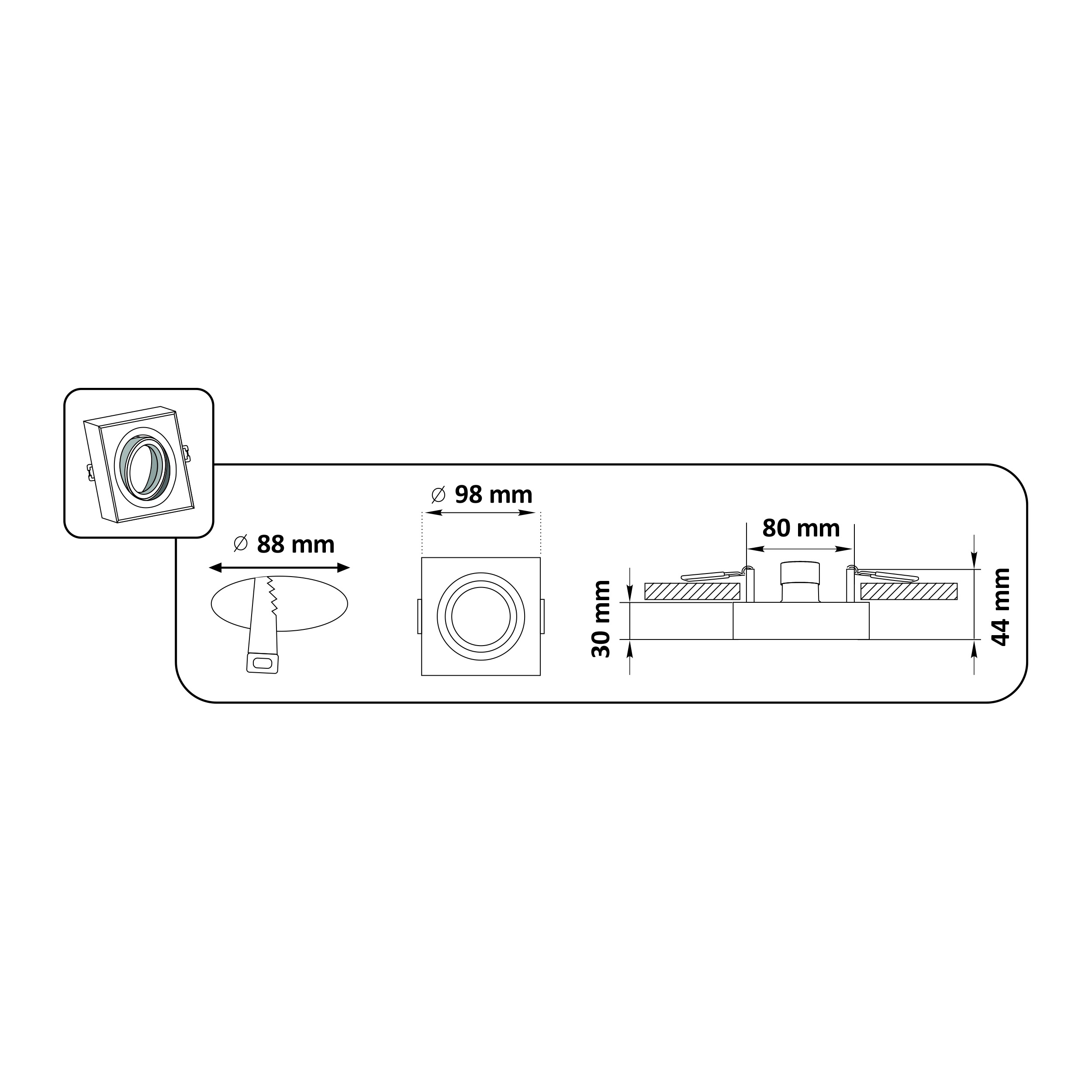 Sanico Goldlux GAJA MR16 oprawa podtynkowa kwadratowa ruchoma biała IP20 – 320070