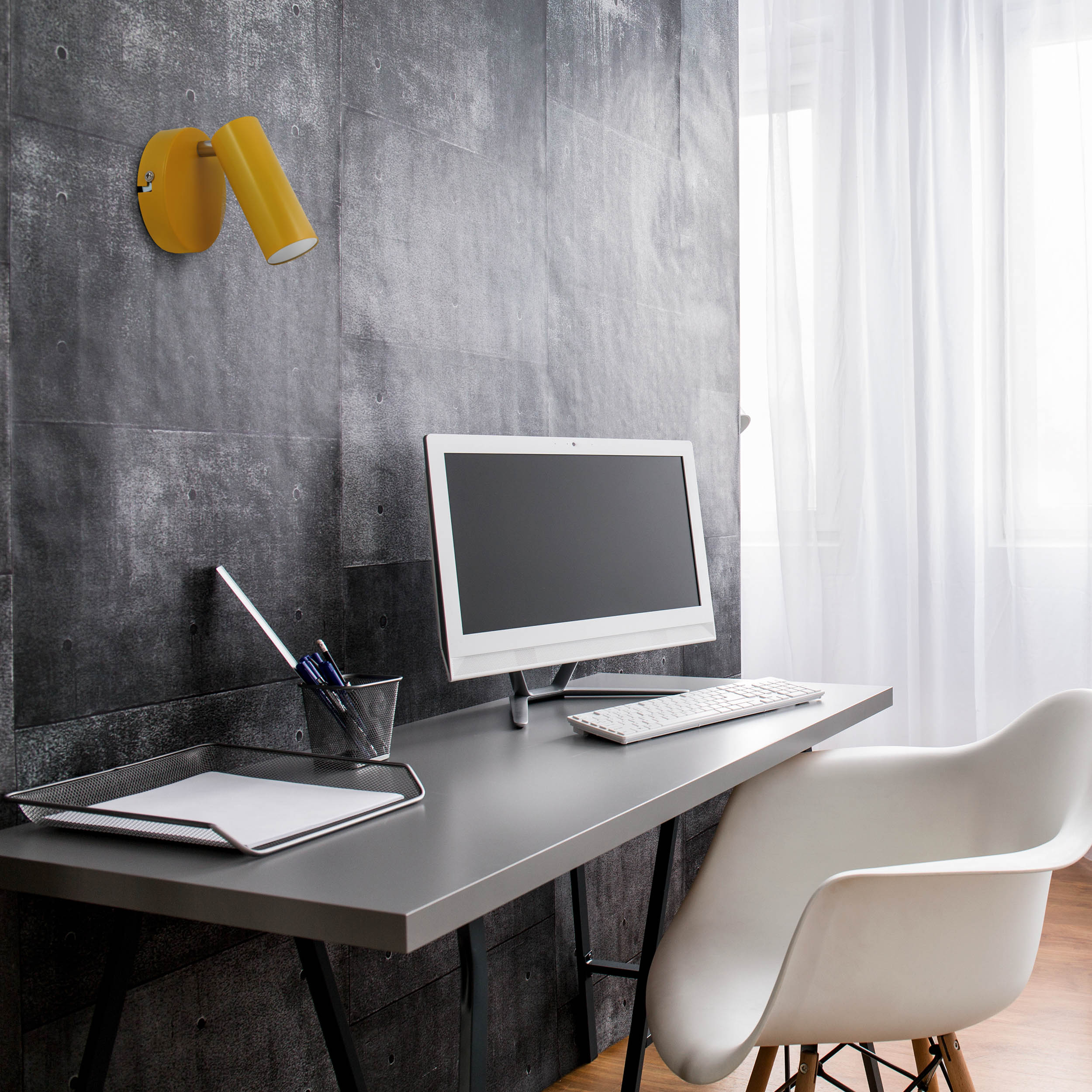GAVI to nowoczesny kinkiet, oprawa z regulowanym niewymiennym źródłem światła LED, wykonana z metalu w kolorze żółtym.