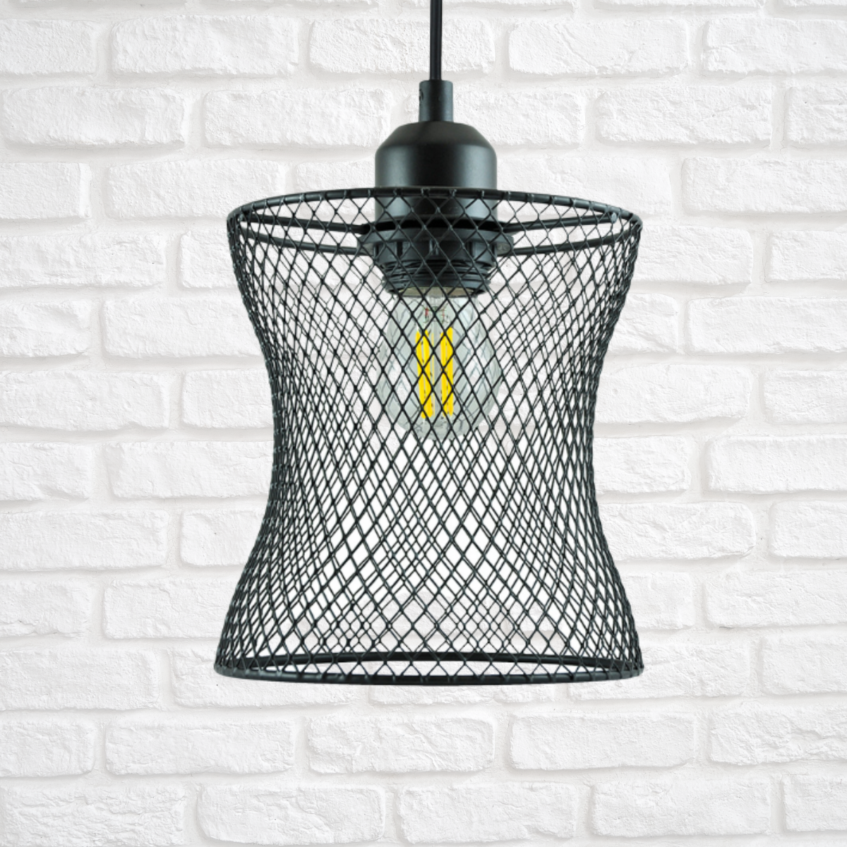 HASLO to lampa przeznaczona do wnętrz urządzonych w nowoczesnym, loftowym stylu. Klosz wykonany z metalowych cienkich drucików przypominający siatkę – podkreśla prostotę i minimalizm.
