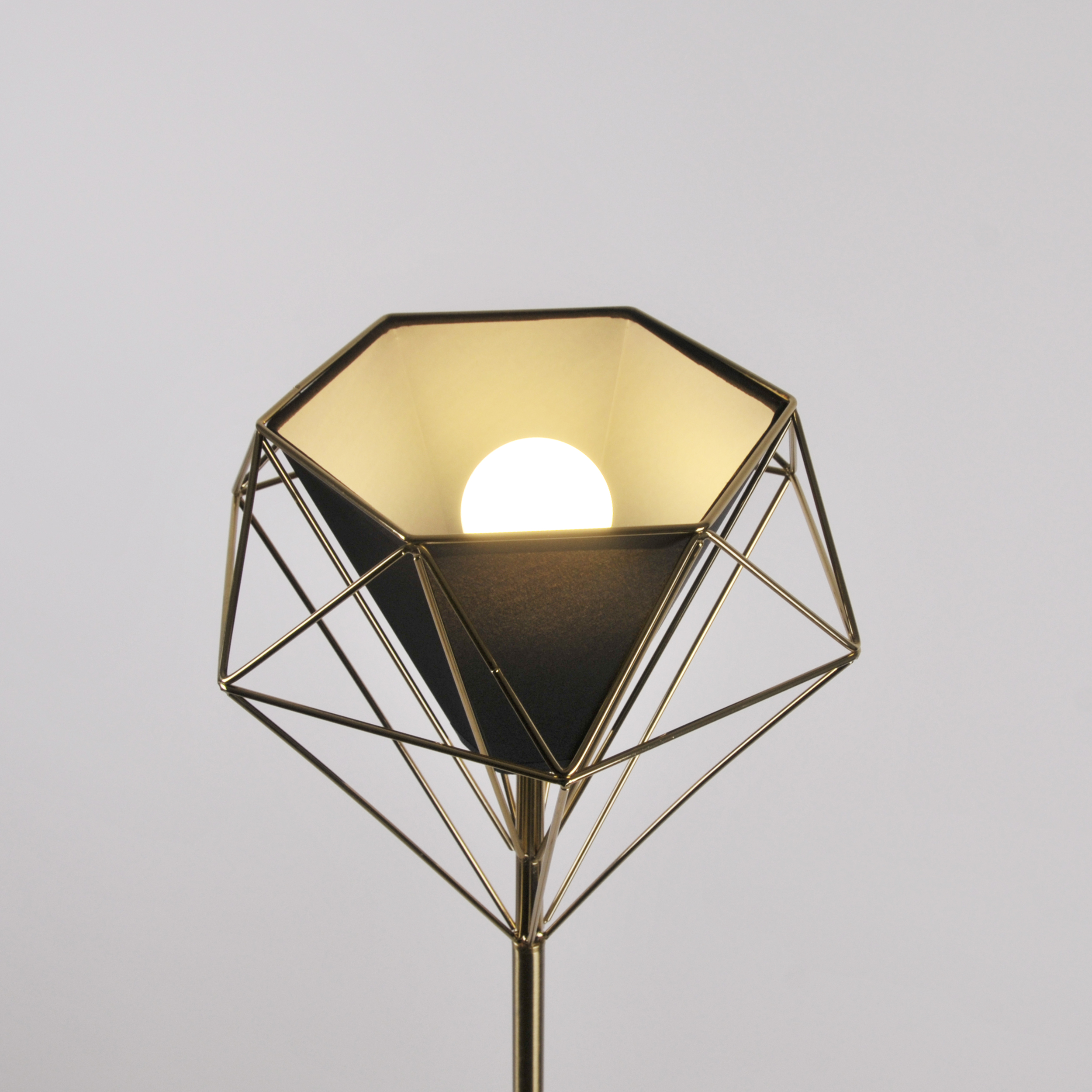 HIRA to seria lamp i kinkietów przeznaczona do wnętrz urządzonych w nowoczesnym stylu. Klosz lampy przywodzi na myśl połączenie figur geometrycznych – podkreśla prostotę i minimalizm, a złoty kolor ozdobnej, zewnętrznej jego części w przyjemny sposób buduje kontrast.