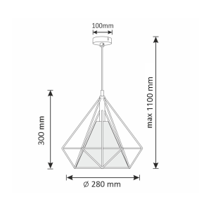 Ozdobny klosz, którego kształt przywodzi na myśl połączenie figur geometrycznych – podkreśla prostotę i minimalizm, a czarny kolor ozdobnej, zewnętrznej jego części w przyjemny sposób buduje kontrast.