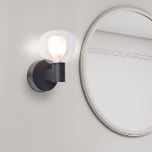 Kinkiet łazienkowy POLA 1 to elegancka i funkcjonalna oprawa ścienna w czarnej kolorystyce z transparentnym, szklanym kloszem, który łączy w sobie nowoczesny design i praktyczne zastosowanie.