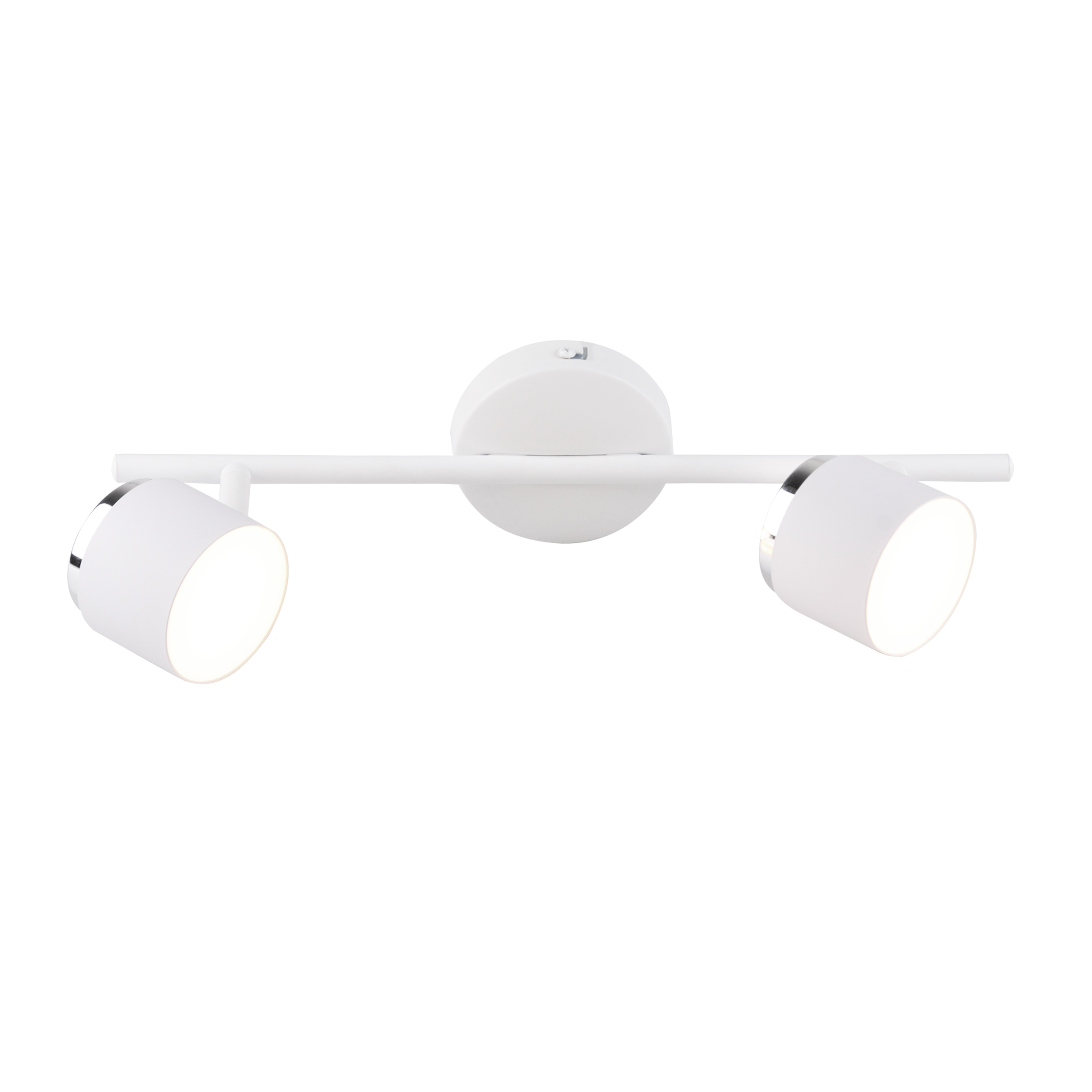 KUBIK to dwupunktowa nowoczesna lampa, listwa ścienno-sufitowa z niewymiennym źródłem światła LED, wykonana z aluminium w kolorze białym oraz chromowym wykończeniem.