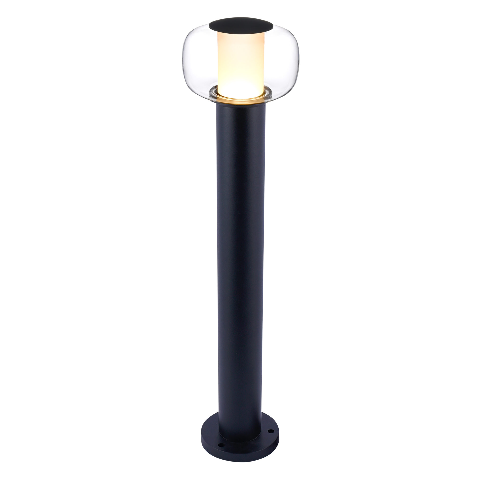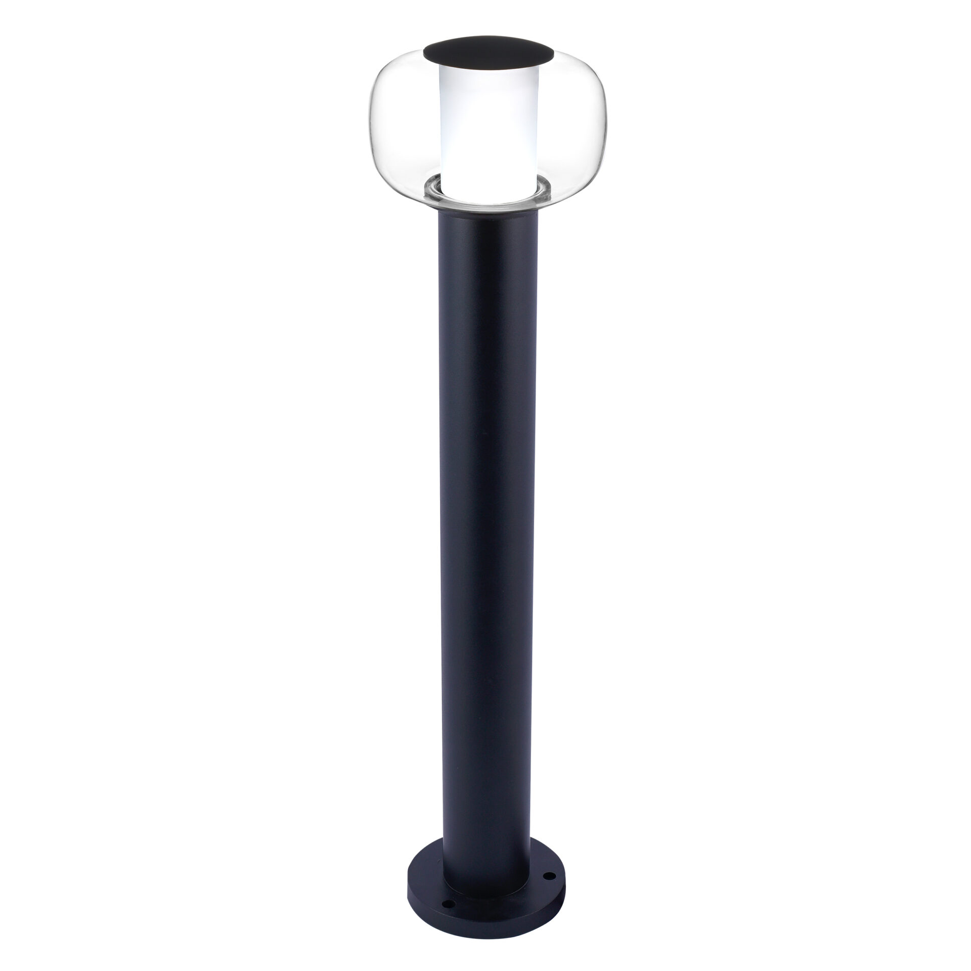 Lampa o wysokości 80 cm, wykonana została z wysokiej jakości materiałów. Czarne aluminium, oraz biały szklany klosz doskonale podkreśli urok Twojej przestrzeni na zewnątrz.