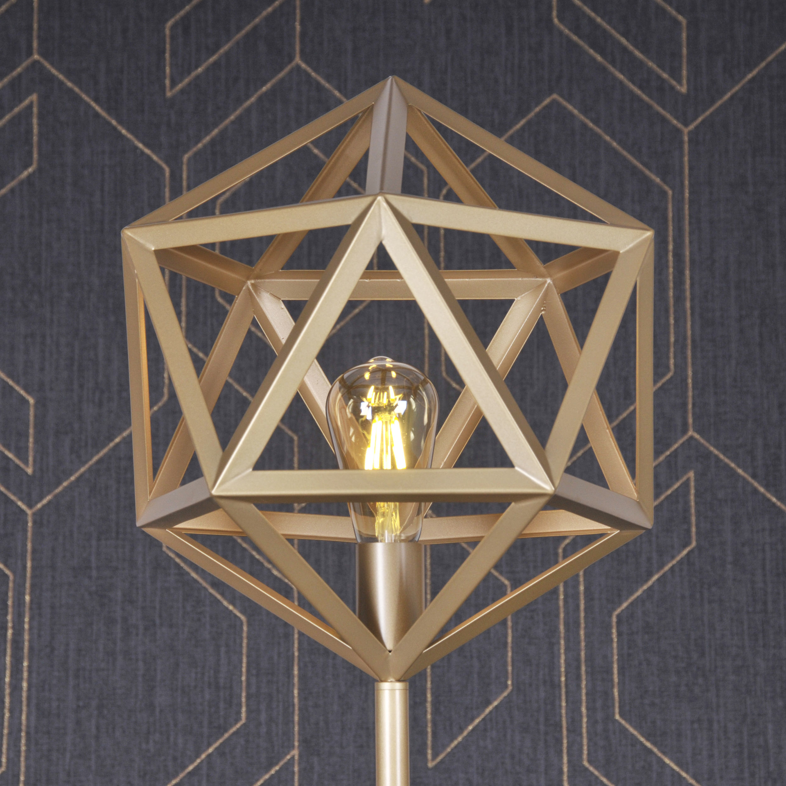 Lampa Sanico Polux Goldlux wyróżnia się niezwykle oryginalną konstrukcją, której sercem jest klosz wykonany z cienkiego kątownika. Dzięki temu powstają subtelne, geometryczne figury, które nadają lampie niepowtarzalny charakter i artystyczny wymiar. Jej minimalistyczny, a zarazem wyrazisty design idealnie wpisuje się w nurt nowoczesnej architektury wnętrz, podkreślając indywidualność i styl przestrzeni, w której zostanie umieszczona.