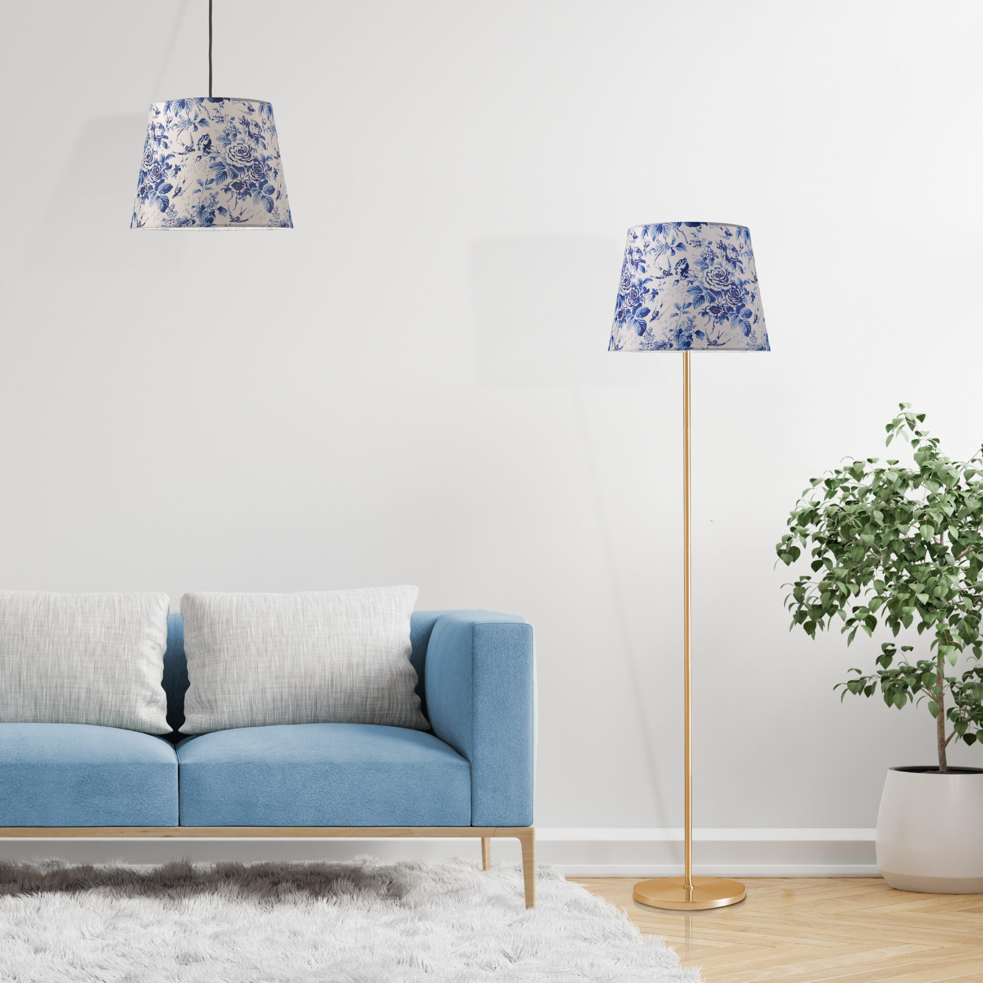Lampa podłogowa SCARLET złota 140cm od Sanico Goldlux abażur stożek 35cm porcelain E27