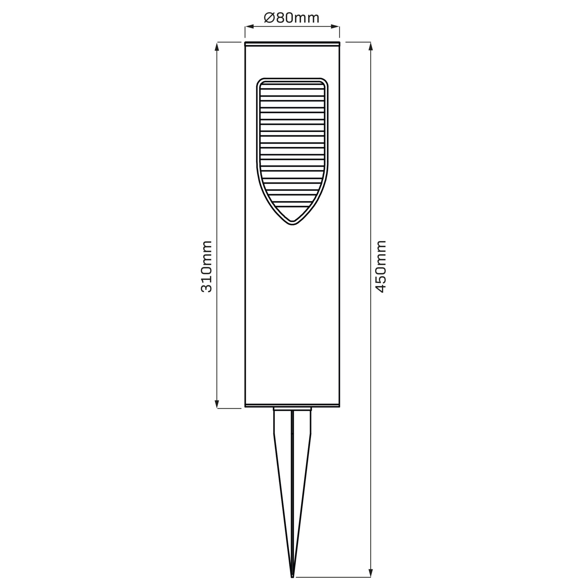 Stylowa lampa ogrodowa z ciepłym światłem (3000K), zasilana energią słoneczną. Wystarczy wbić ją w ziemię – wbudowany panel solarny automatycznie uruchamia światło po zmroku.