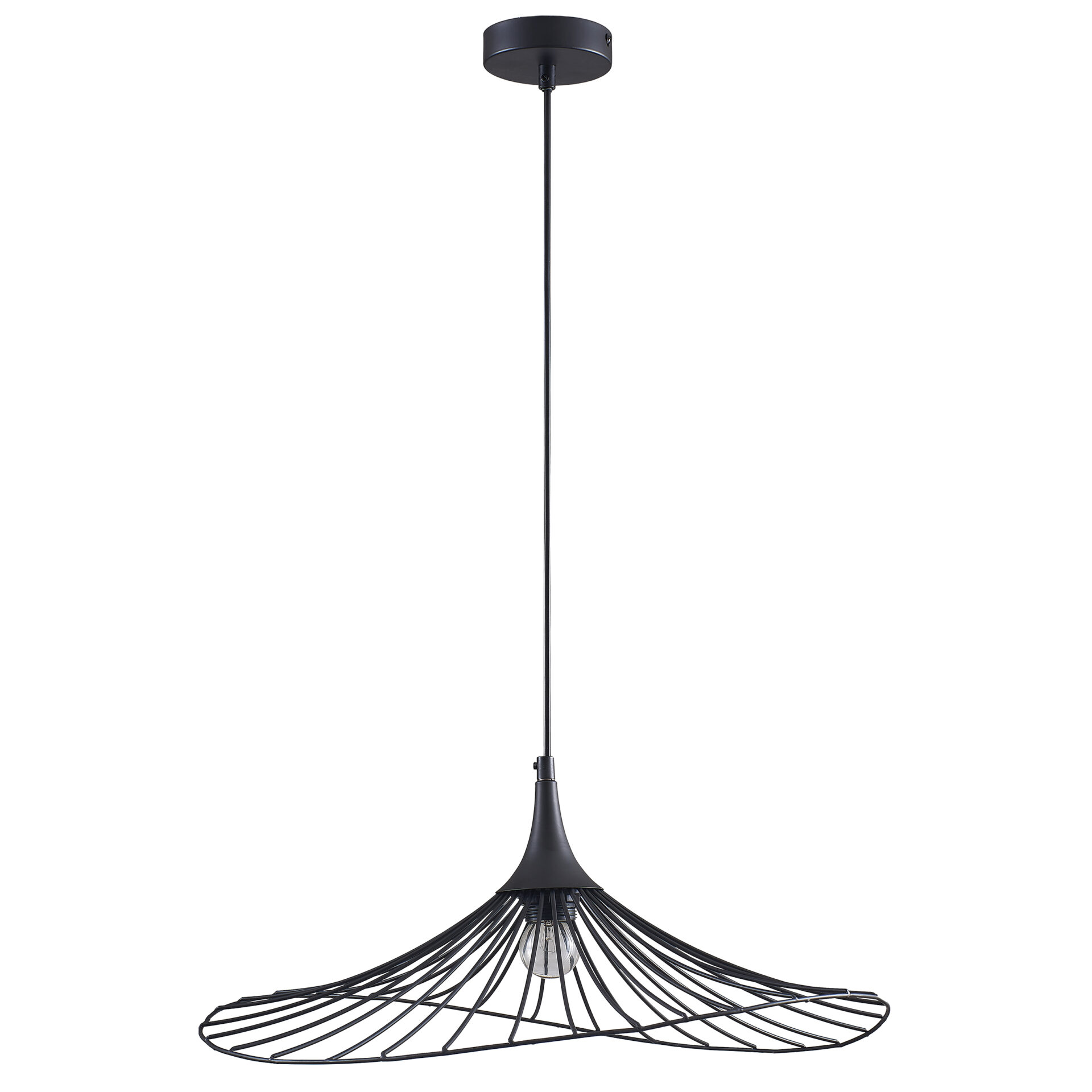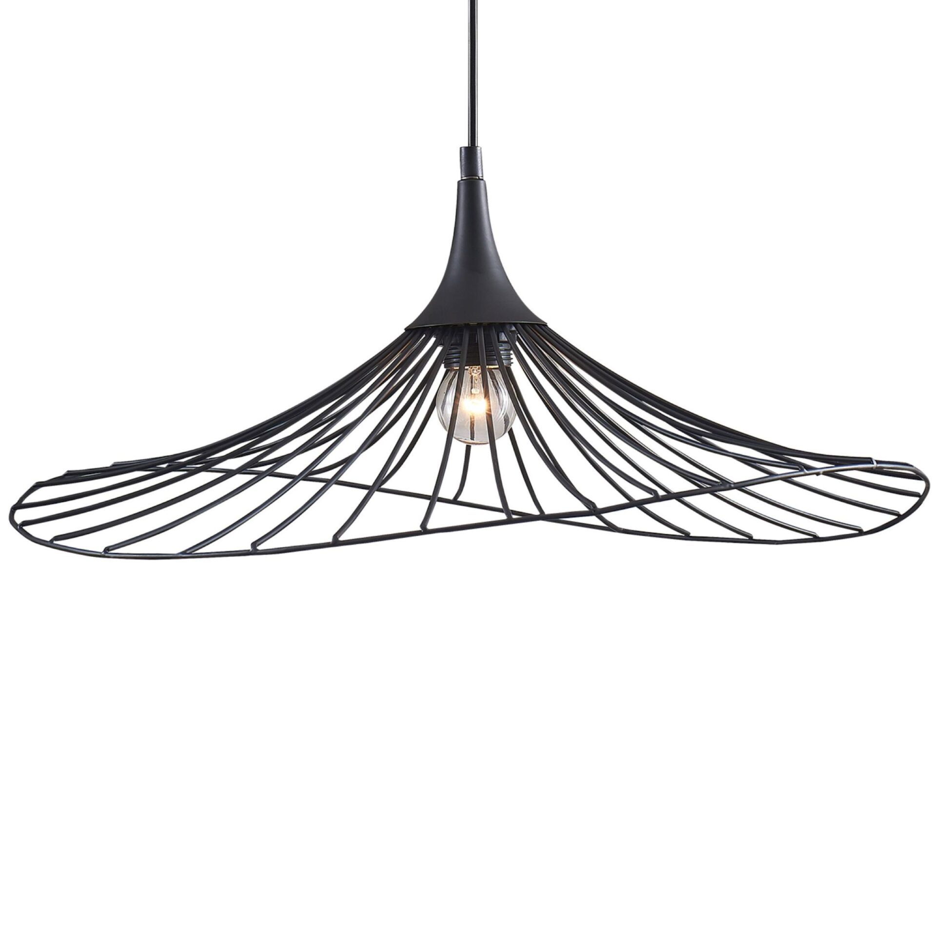 Niezwykle oryginalna i stylowa lampa wisząca ARIELLE w kolorze czarnym to doskonały wybór dla tych, którzy cenią sobie nowoczesne oświetlenie z nutą industrialnego charakteru. Jej niebanalny design, w którym klosz przypominający kształtem kapelusz został subtelnie wygięty, dodaje wnętrzu unikalnego stylu i elegancji. To połączenie prostoty i intrygującej formy sprawia, że lampa ARIELLE staje się centralnym punktem każdej przestrzeni, w której się znajduje, przyciągając wzrok i wzbogacając aranżację.