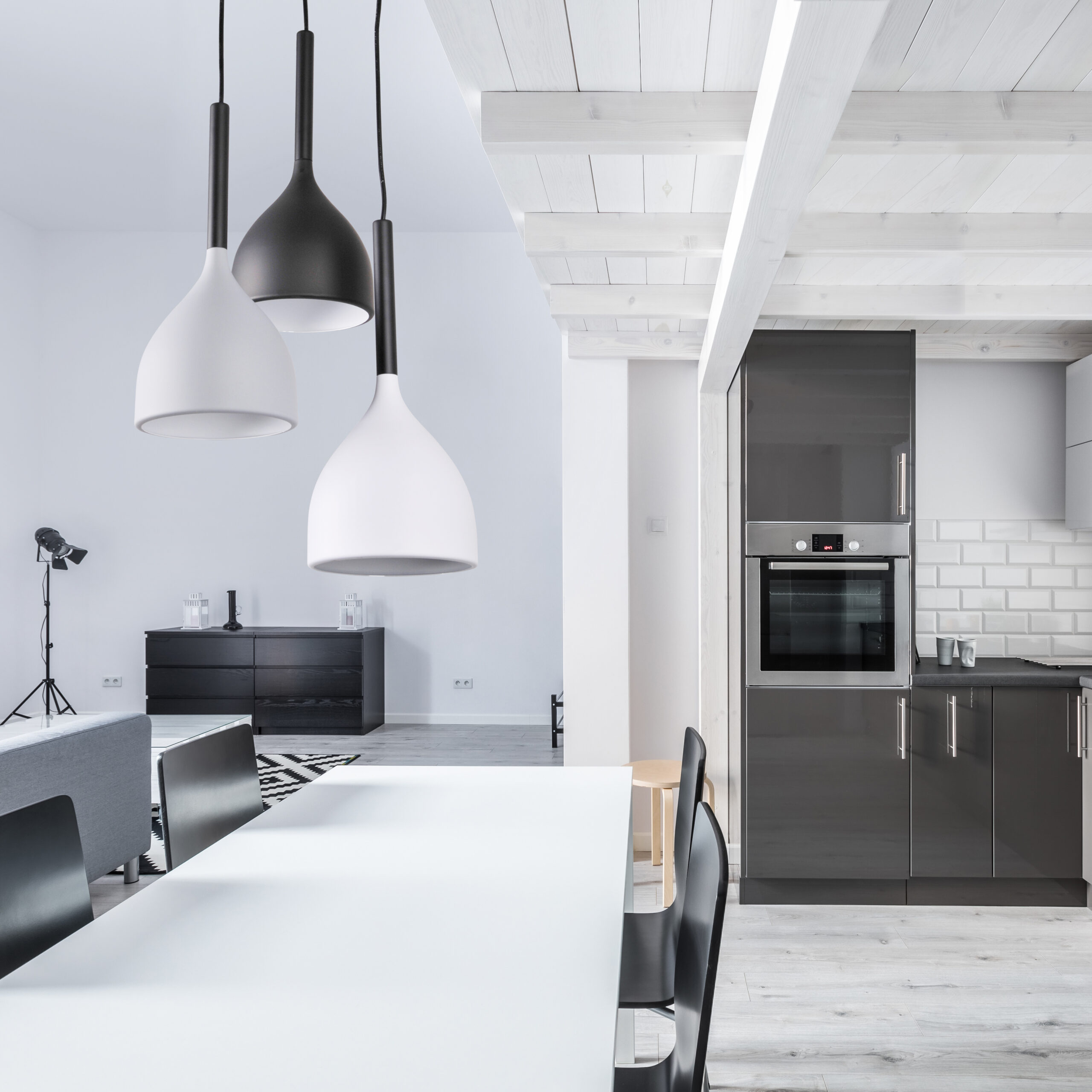 Prosta i minimalistyczna forma lampy została wykonana z metalu w trzech kolorach – białym, czarnym i szarym – które pasują niemal do każdego wnętrza.