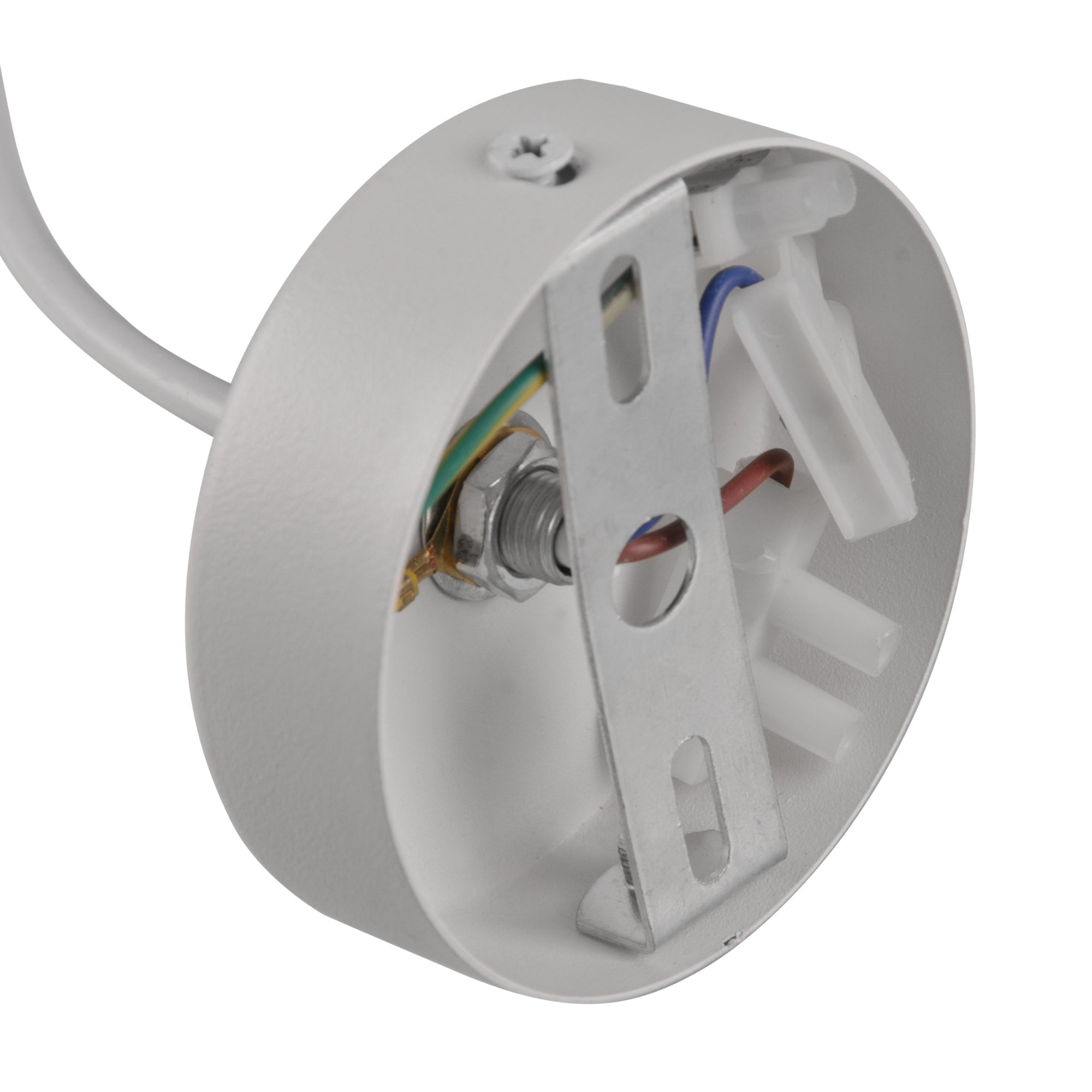 Zewnętrzna biała matowa powierzchnia lampy kontrastuje ze srebrnym wnętrzem. Elementem dekoracyjnym lampy jest srebrny pierścień pośrodku klosza. Ze względu na możliwość regulacji, lampę można zawieszać na różnej długości.
