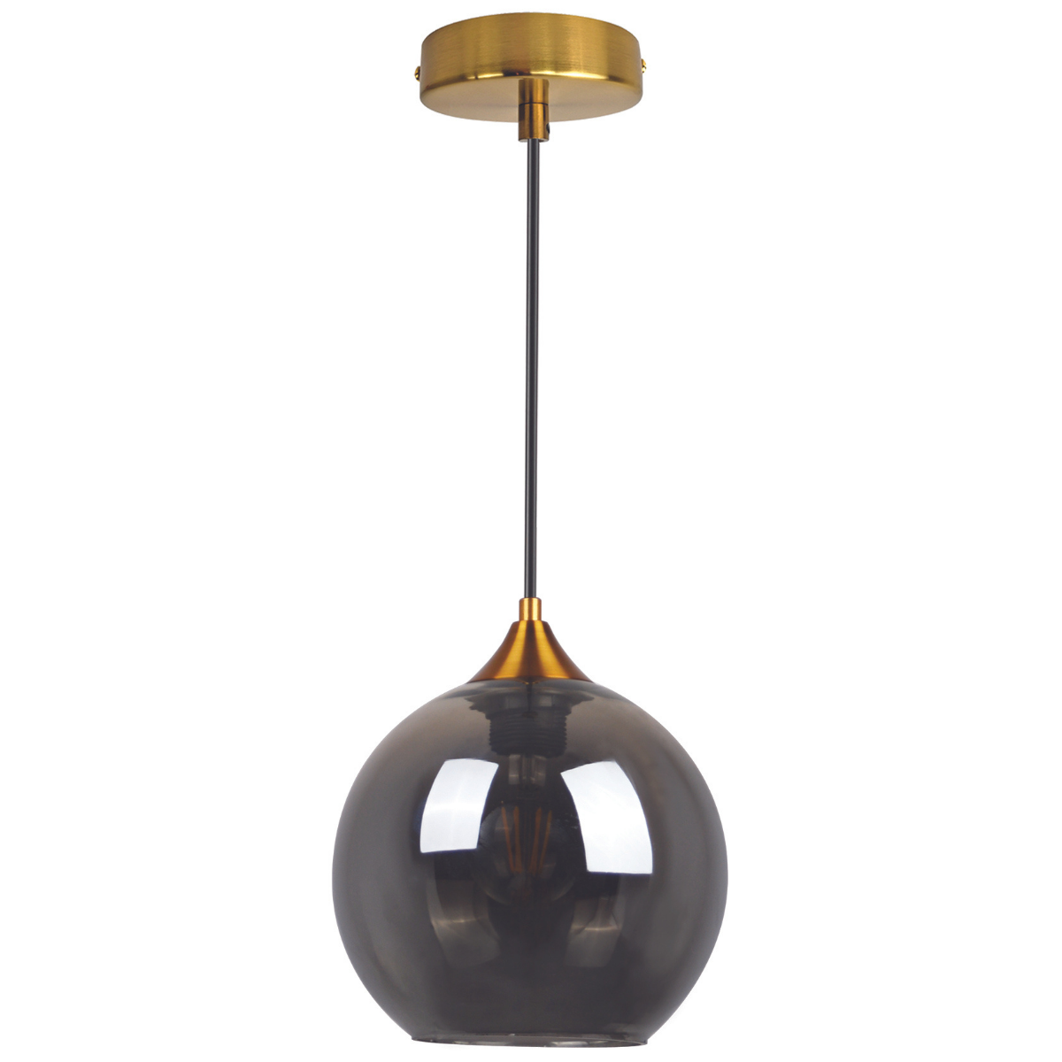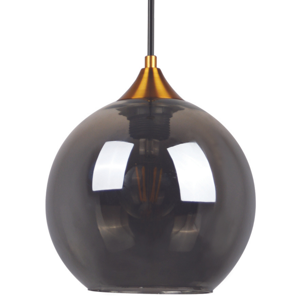 Złota podstawa lampy w połączeniu ze szklanym kloszem, czyni ją wyjątkowo elegancką i reprezentacyjną, a miękkie i przyjemne światło wydobywające się przez zadymiony klosz nadaje wnętrzu oryginalny charakter.