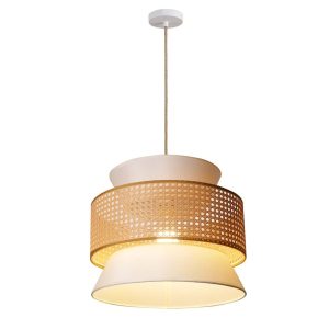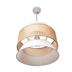 Lampa wisząca Grenada to wyjątkowe połączenie naturalnej elegancji i ponadczasowej formy. Składa się z dwóch kloszy – wewnętrznego, wykonanego z delikatnej tkaniny o subtelnym wykończeniu, oraz zewnętrznego w formie walca z plecionki rattanowej w kolorze jasnego beżu. Ten naturalny akcent dodaje lampie lekkości i przytulności, jednocześnie wprowadzając do wnętrza ciepły, organiczny charakter.