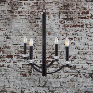 Lampa została wykonana z metalu w kolorze czarnym, ozdobiona kryształkiem znajdującym się przy oprawce żarówki. Całość tworzy proste, a zarazem eleganckie połączenie.