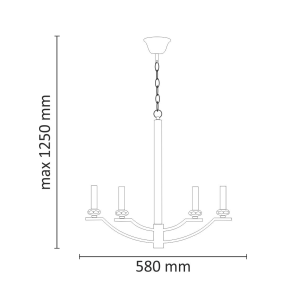 Lampa posiada regulowane ramiona, które można ustawiać według własnych potrzeb. Swoim wyglądem przypomina świecznik czteroramienny.