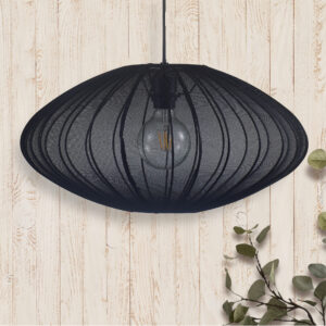 Niezwykle oryginalna i stylowa lampa wisząca KINU w kolorze czarnym doskonale wpisuje się w najmodniejsze aranżacje. Jej abażur, wykonany z delikatnej nylonowej siateczki, tworzy efektowną grę świateł i cieni, które subtelnie przenikają przez naturalny materiał, nadając wnętrzu ciepłego, przytulnego charakteru. To idealne rozwiązanie dla osób ceniących sobie harmonię, które dodają wnętrzu niepowtarzalnego uroku.