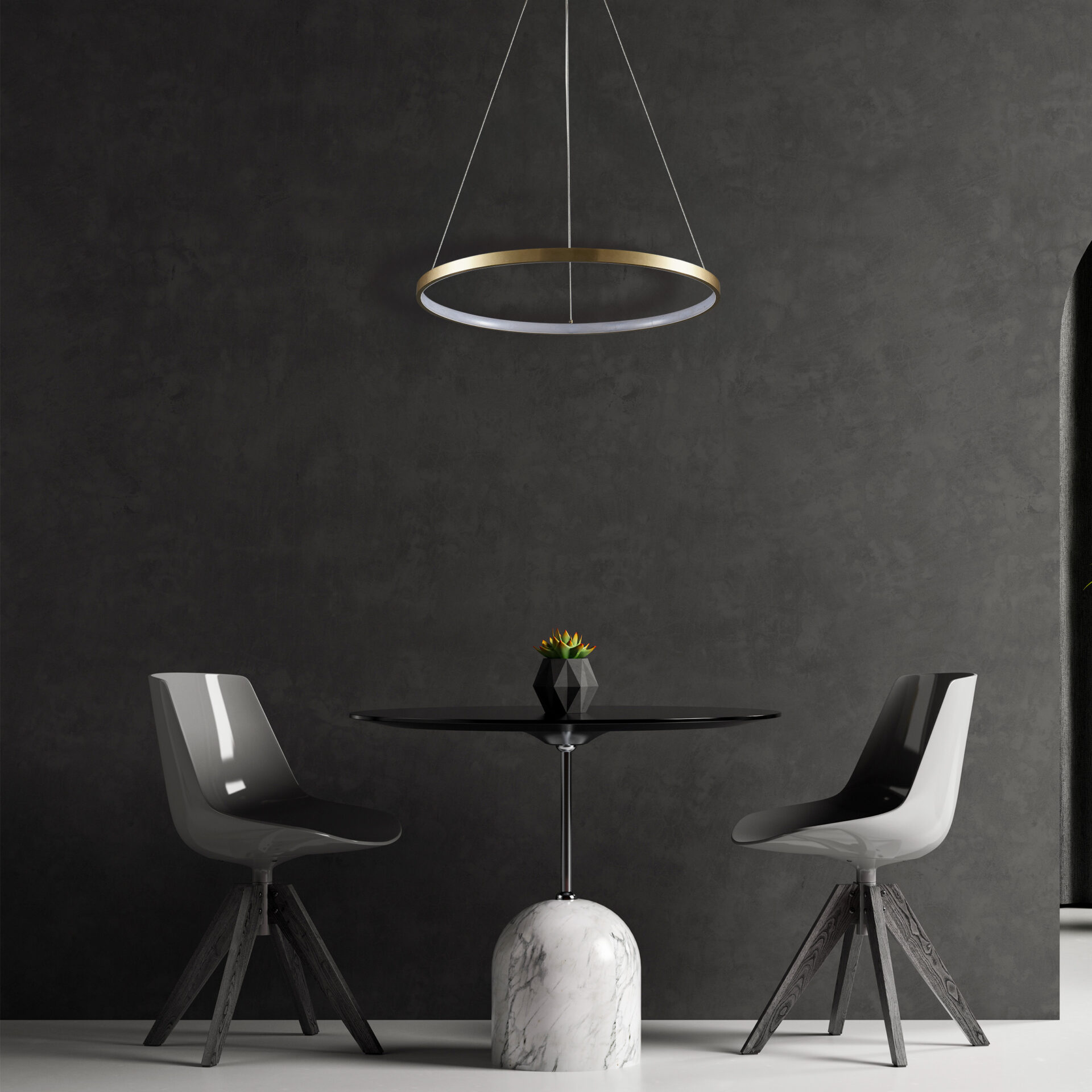 Lampa wisząca LED LEA 1 to nowoczesne i stylowe oświetlenie sufitowe, które doskonale sprawdzi się w salonie, jadalni, kuchni, biurze czy przestrzeniach komercyjnych. Dzięki swojej eleganckiej, złotej kolorystyce oraz minimalistycznemu designowi pasuje do wnętrz urządzonych w stylu nowoczesnym, loftowym, industrialnym i minimalistycznym.