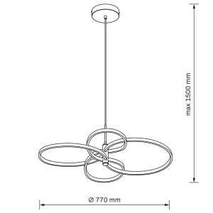 Lampa została wyposażona w moduł LED o mocy 37W, emitujący neutralne światło 4000K o strumieniu 5700lm – to połączenie wydajności i komfortu użytkowania. Zawieszenie regulowane do 150 cm pozwala dopasować lampę do potrzeb przestrzeni, czyniąc ją idealnym rozwiązaniem nad dużym stołem, w przestronnym salonie lub w eleganckim biurze.