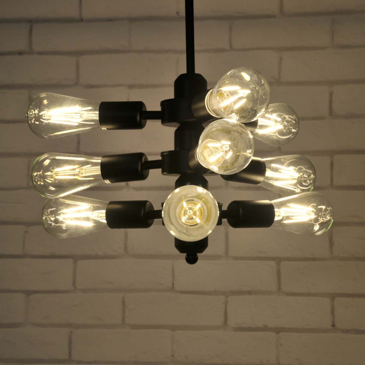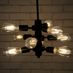 Lampa została wykonana z metalu w kolorze czarnym. Ze względu na zastosowanie aż dziewięciu punktów świetlnych, lampę z powodzeniem można zastosować jako oświetlenie główne.