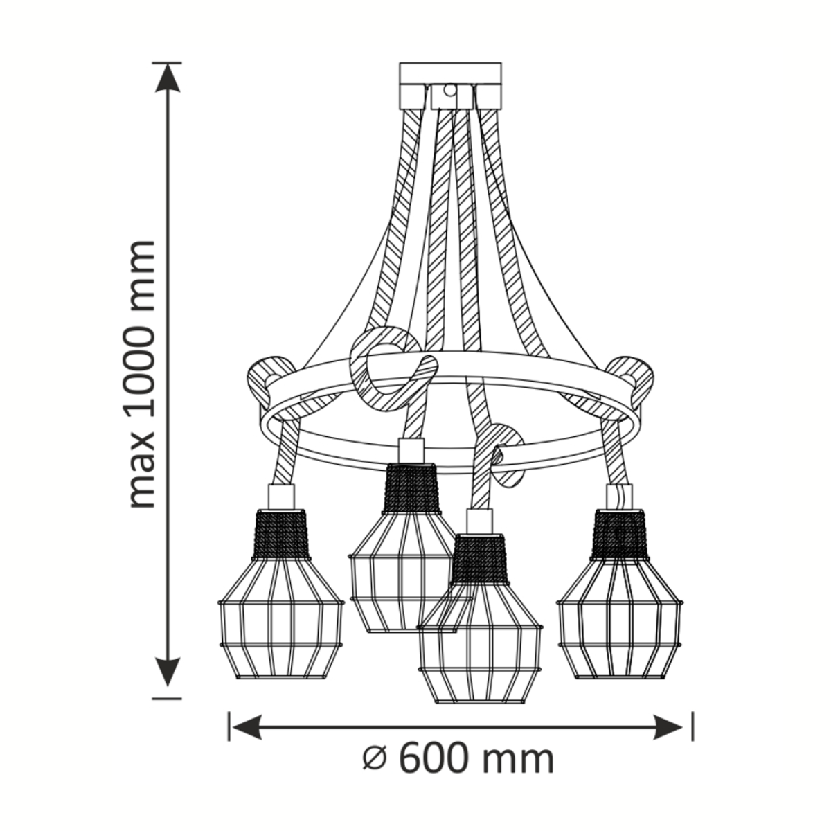 - Model: Lampa loftowa wisząca ROPE ALEGRA 4 x E2