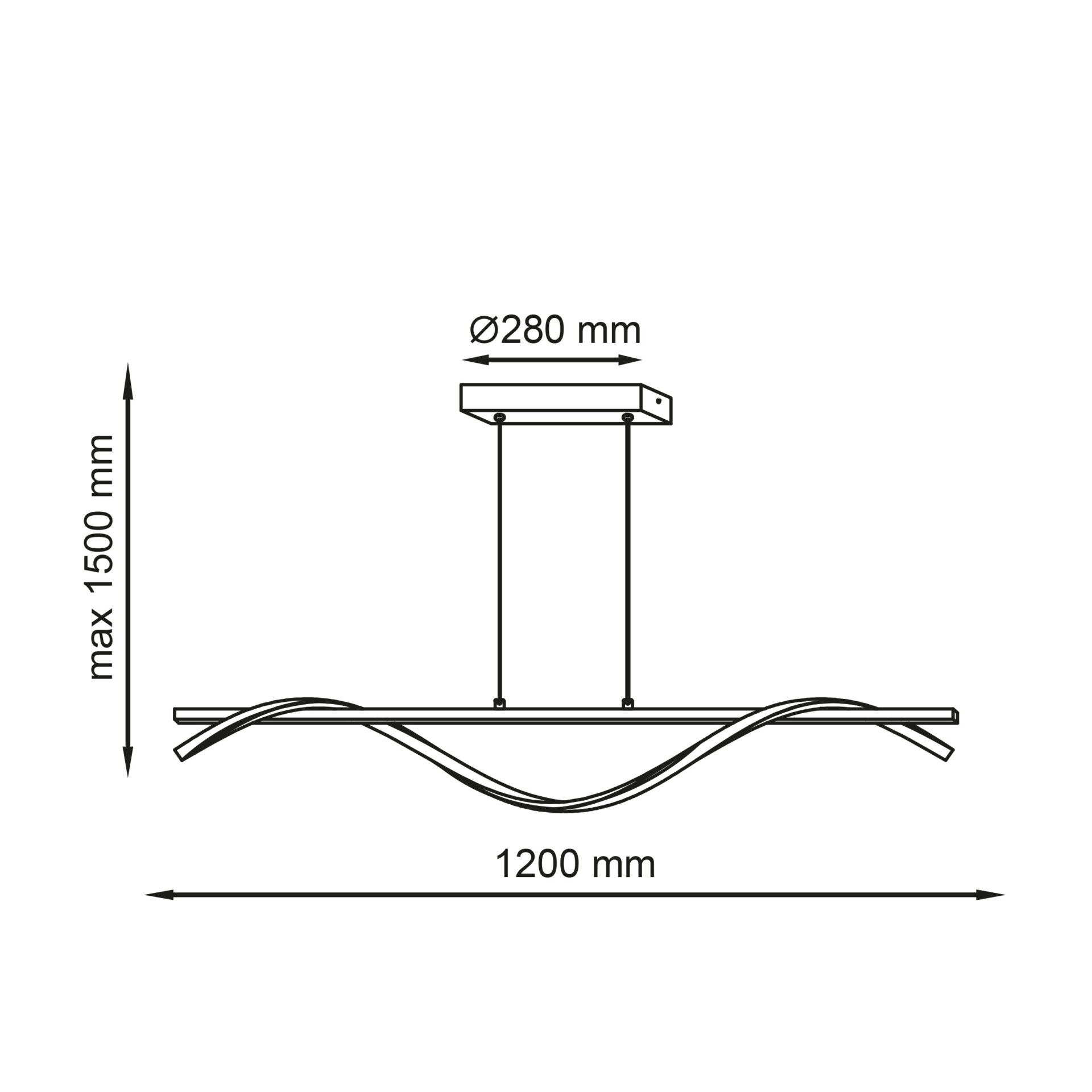 Dzięki regulowanym linkom, lampa umożliwia dopasowanie wysokości do indywidualnych potrzeb – szerokość oprawy to 120 cm, a maksymalna wysokość zawieszenia wynosi 150 cm.