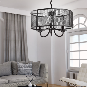 Lampa została wykonana z metalu w kolorze czarnym z kloszem. Ze względu na zastosowanie czterech punktów świetlnych, lampę z powodzeniem można zastosować jako oświetlenie główne.
