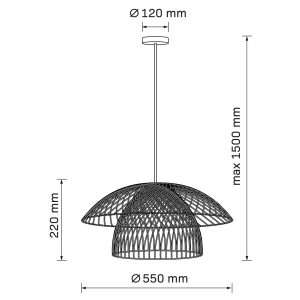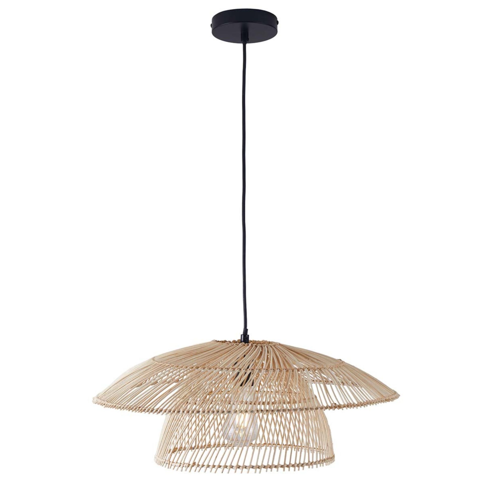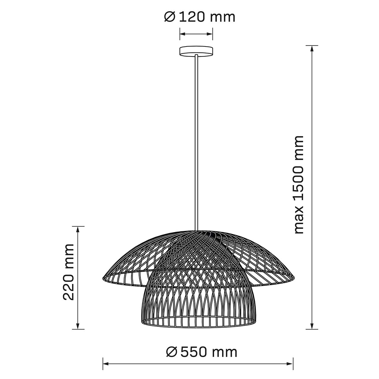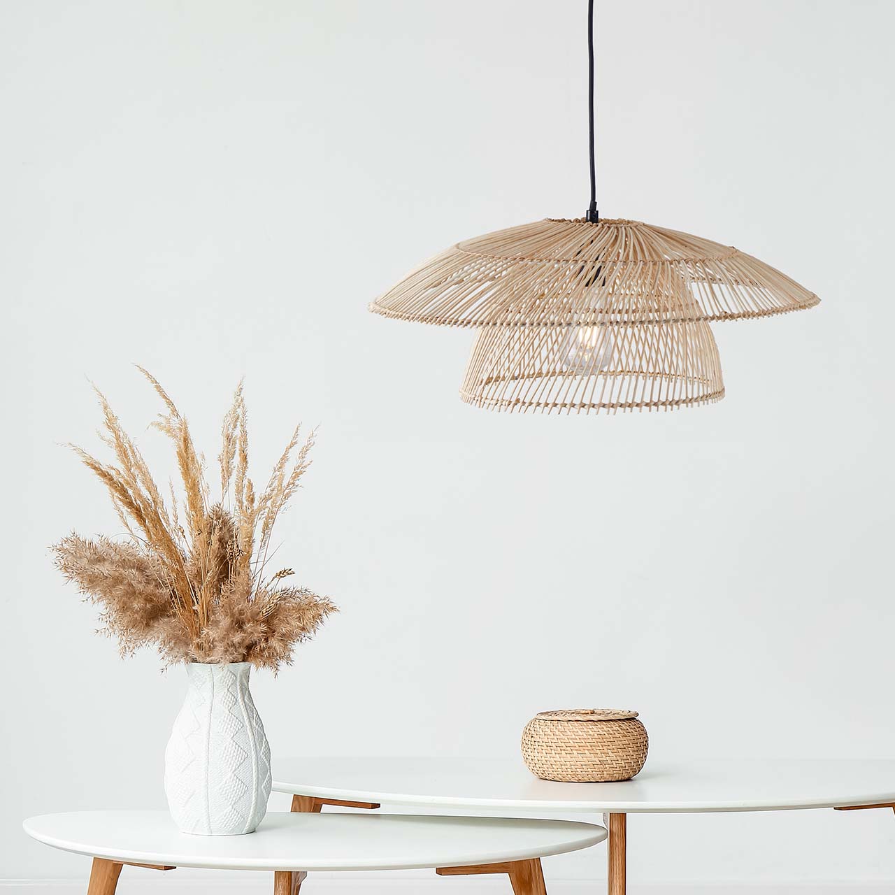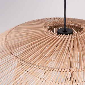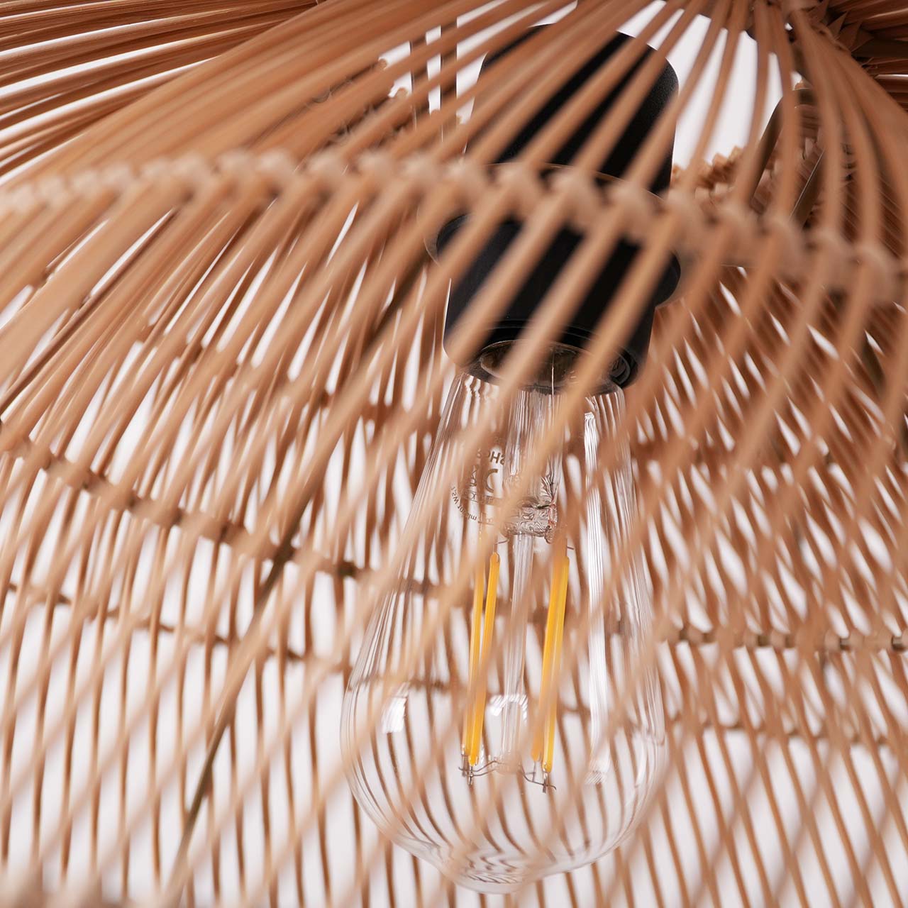 Średnica lampy wynosi 55 cm, co sprawia, że jest to wyraźny punkt świetlny w większych pomieszczeniach. Lampa wyposażona jest w standardowy gwint E27, dzięki czemu możesz swobodnie dobrać żarówkę zarówno pod względem mocy, jak i barwy światła. Najlepiej sprawdzają się tu dekoracyjne żarówki filamentowe, które podkreślają naturalny urok bambusowej plecionki.