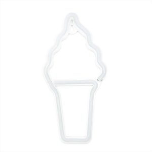 Słodki neon LED w kształcie lodów rożka – idealny do letnich aranżacji, pokoju dziecięcego lub cukierni. Kolorowe światło LED tworzy radosny klimat. (IP20, USB, lekka konstrukcja).