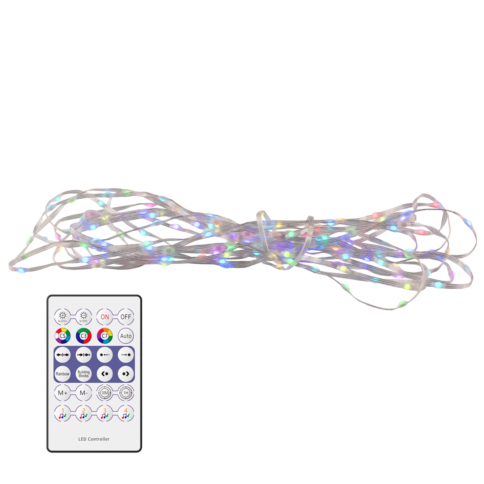 Łańcuch LED świeci w kolorach RGB. Posiada wiele zdefiniowanych trybów, jak również wyłącznik czasowy 30 i 60 minut.