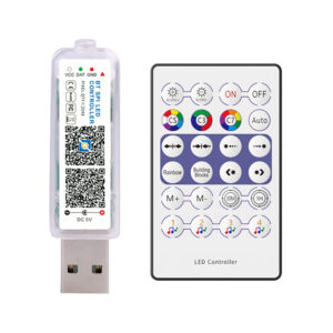 - Zestaw zawiera łańcuch LED RGB IP20 10m, pilot radiowy IR