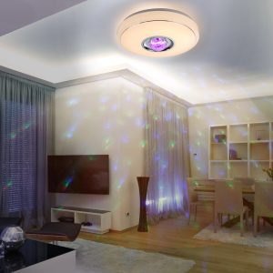 Plafon LED zbudowany został w oparciu o diody LED, o bardzo wysokiej skuteczności świecenia oraz niskim zużyciu energii. Konstrukcja plafonu pozwala na montaż naścienny lub sufitowy.Plafon MAGIC DISCO LED doskonale prezentuje się w pokoju dziennym, sypialni, jest również ciekawą propozycją do pokoju młodzieżowego.