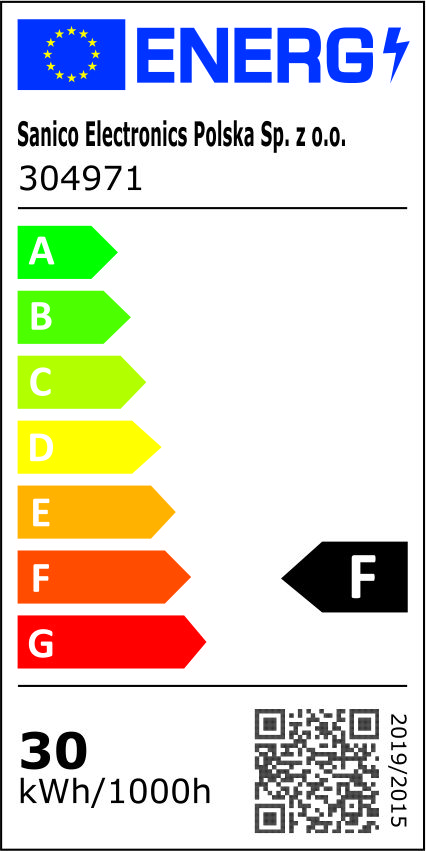 - Produkt wyposażony w niewymienne źródło światła o klasie efektywności energetycznej F