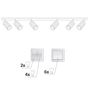 NICEA to sześciopunktowa, nowoczesna oprawa, listwa z wymiennym źródłem światła, wykonana z aluminium w kolorze białym, ze złotym odkręcanym pierścieniem.