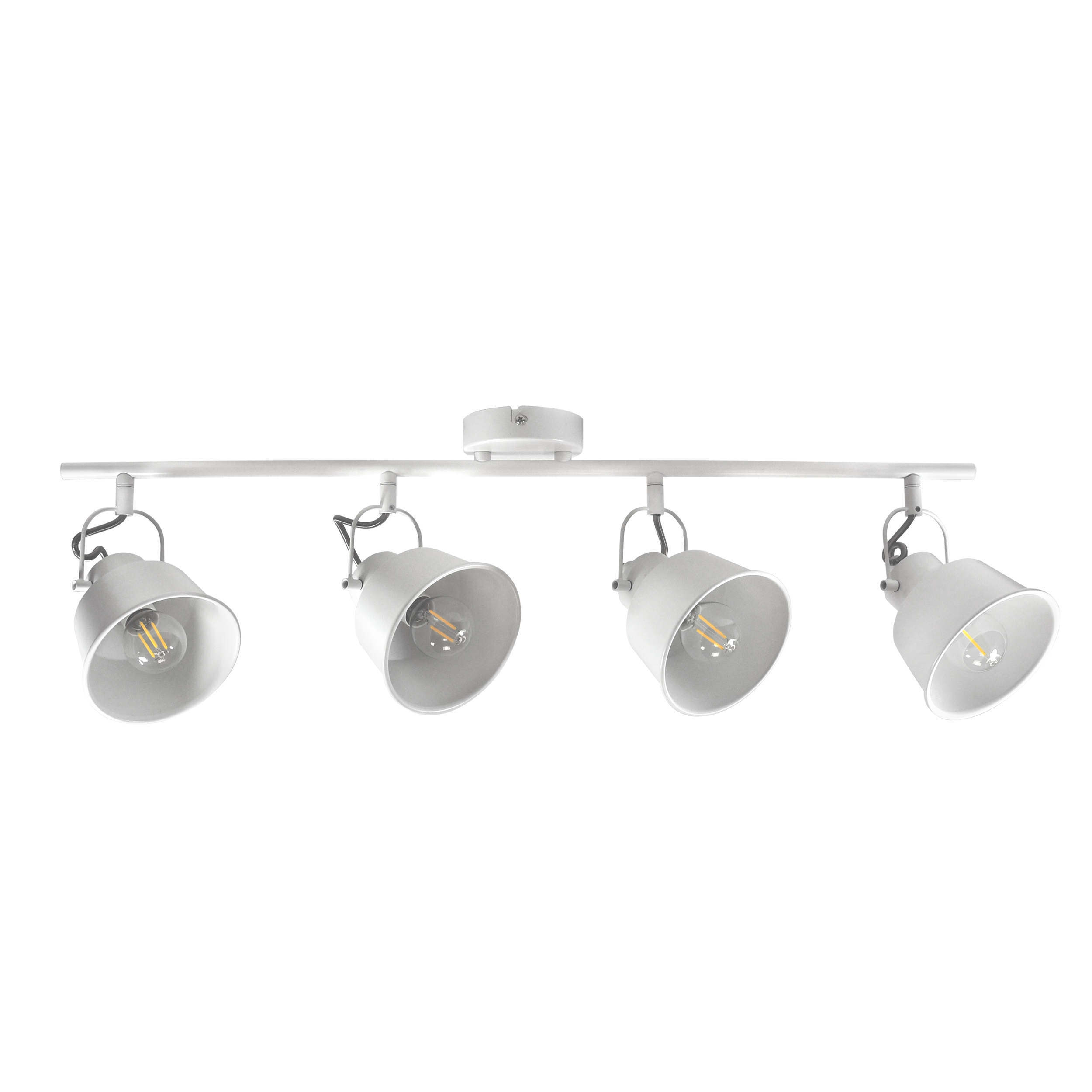 NIKO to nowoczesna oprawa, czteropunktowa listwa sufitowa w stylu industrialnym (loftowym) wykonana z metalu w kolorze białym.