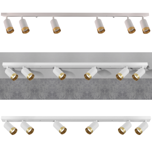 ARRAS to sześciopunktowa, nowoczesna oprawa, listwa z wymiennym źródłem światła, wykonana z aluminium w kolorze białym, ze złotym odkręcanym pierścieniem.
