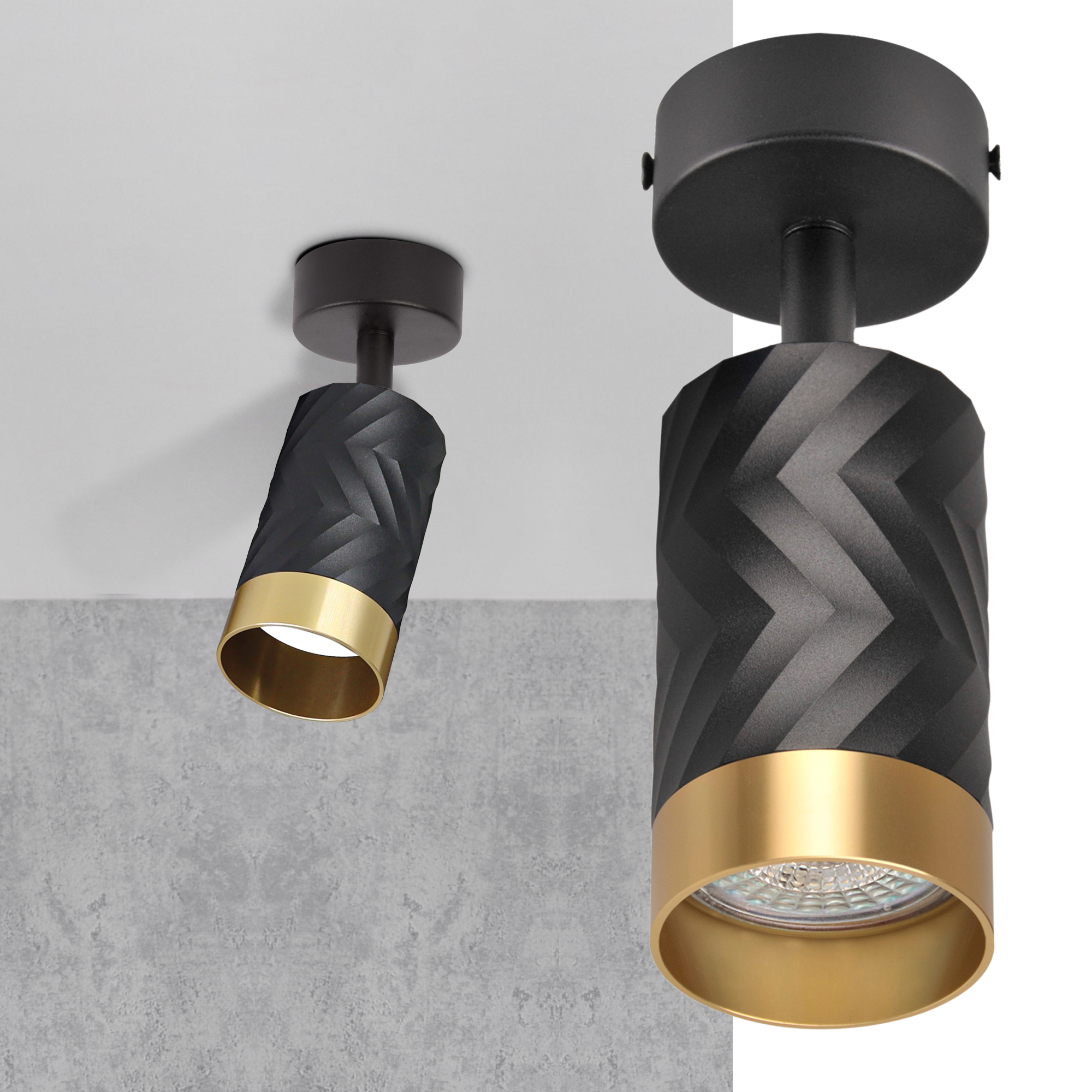 Sanico Goldlux nowoczesny aluminiowy reflektor loft ARRAS 1xGU10 oprawa ścienno sufitowa czarno złota 323538