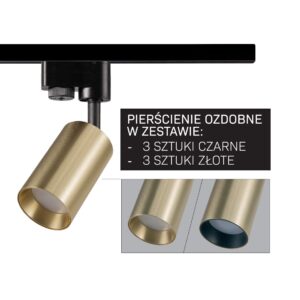 Sanico Goldlux nowoczesny aluminiowy reflektor loft zestaw szynowy 1-fazowy 1m MARIBEL 3xGU10 złoty czarny 327611