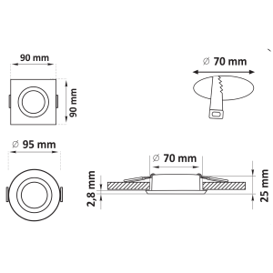 Sanico Goldlux OPIN MR16 oprawa podtynkowa kwadratowa ruchoma biała IP20 – 306289