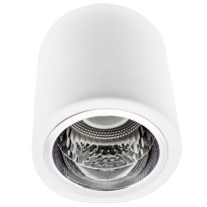 Elegancka oprawa natynkowa sufitowa w kształcie walca, wykonana z metalu w gładkim białym kolorze. Przeznaczona do żarówki E27, max. 20W z wymiennym źródłem światła, co pozwala dopasować moc i barwę do własnych potrzeb. Wewnętrzny odbłyśnik zapewnia równomierne rozproszenie światła.