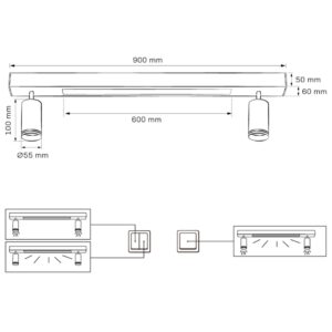 PARIS to dwupunktowa, nowoczesna oprawa, listwa z wymiennym źródłem światła, wykonana z aluminium w kolorze czarnym. Elementem dekoracyjnym oprawy jest akrylowy odkręcany pierścień.