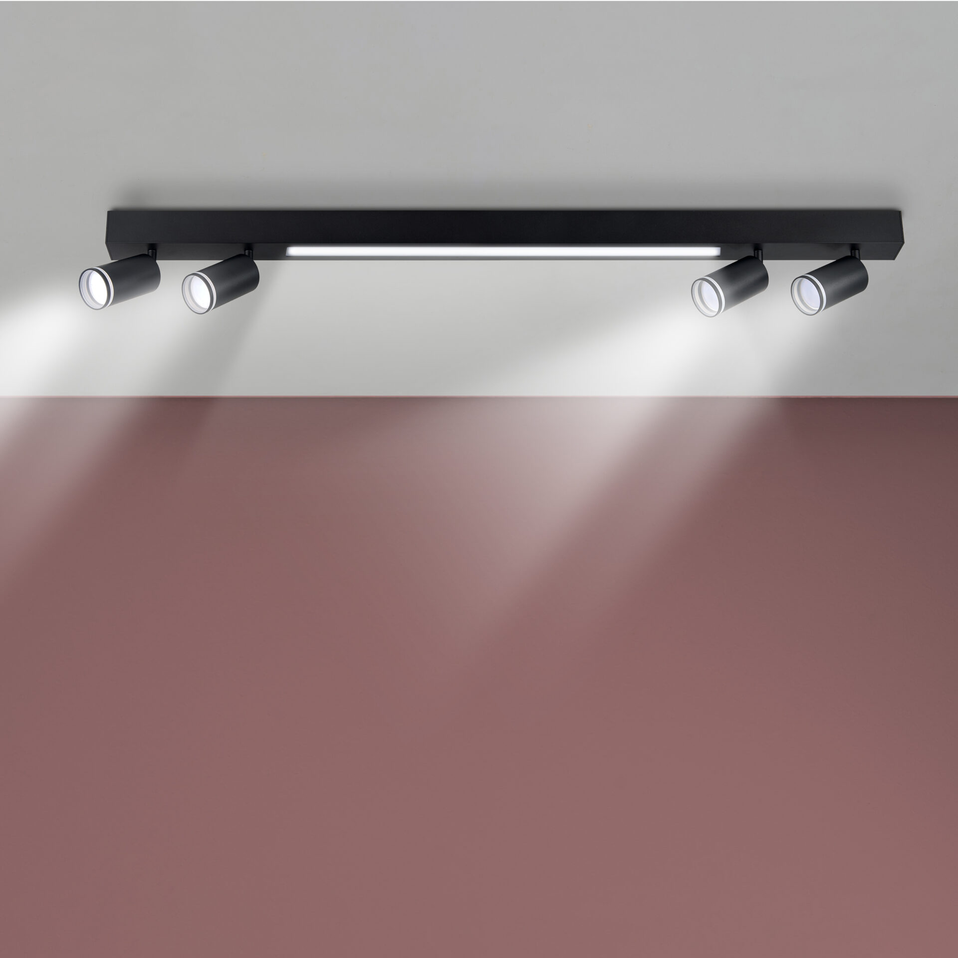 PARIS to czteropunktowa, nowoczesna oprawa, listwa z wymiennym źródłem światła, wykonana z aluminium w kolorze czarnym. Elementem dekoracyjnym oprawy jest akrylowy odkręcany pierścień.